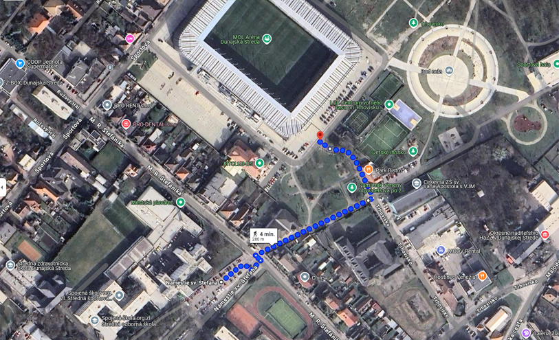 Parkovanie pre všetkých ružomberských fanúšikov v Dunajskej Strede bude vyhradené na Námestí svätého Štefana, odkiaľ sa následne presunú na štadión. Pokiaľ idete na finále vlastným autom, je dôležité dodržať trasu na obrázku. Inak budete odklonení políciou.