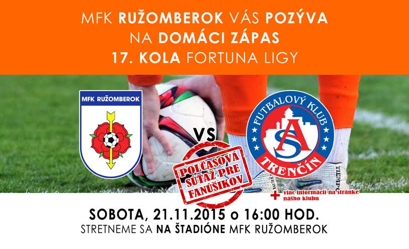 Návštevníkov zápasu žiadame, aby prišli na štadión v dostatočnom predstihu. Pokladne sú otvorené už od 14:30. Zároveň upozorňujeme, že predaj vstupeniek na pokladniach štadióna MFK Ružomberok, trvá do šesťdesiatej minúty hracieho času. Po tomto čase sú pokladne uzatvorené a vstup na štadión je umožnený len osobám s platnou vstupenkou, resp. permanentkou!