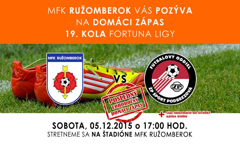 Sobotným zápasom s Podbrezovou sa Ružomberok rozlúči s jesennou časťou sezóny. Preto veríme, že nám zachováte svoju priazeň aj v poslednom tohtoročnom zápase a užijeme si spoločnú víťaznú rozlúčku. Pre fanúšikov je pripravený bohatý program: