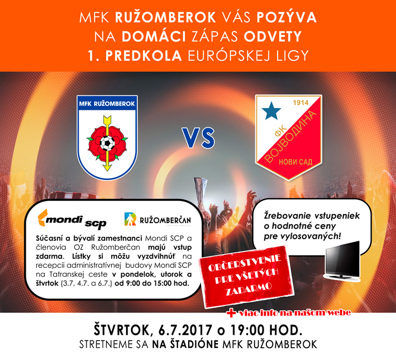 V úvodnom súboji Ružomberok prehral v Novom Sade tesne 1:2 a tento výsledok dáva nášmu mužstvu pred domácou odvetou šancu na postup. Na zmazanie jednogólového manka budeme potrebovať podporu každého z vás!