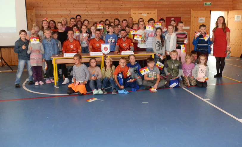 Na sympatické podujatie, ktorého sa zúčastnilo viac ako päťdesiat detí, zavítali aj traja hráči nášho A mužstva – Dominik Kružliak, Peter Maslo a Nermin Haskić. Žiaci základnej školy milo prekvapili množstvom a rôznorodosťou pripravených otázok. Ružomberskí futbalisti museli neraz načrieť hlboko do svojich spomienok. Deti okrem iného zaujímalo kedy dal prvý ligový gól Dominik Kružliak, koľko najviac presných zásahov v jednom stretnutí zaznamenal Nermin Haskić a Peter Maslo úspešne čelil výzve ukázať futbalové finty.