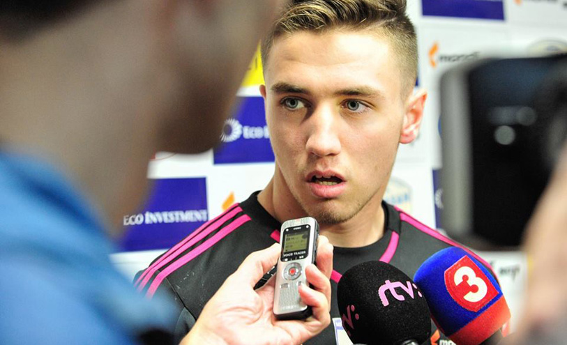 Sedemnásťročný mládežnícky reprezentant dostal v bráne priestor po tom, čo zdravotné problémy nepustili medzi tri žrde Matúša Macíka. Kedy sa dozvedel od trénera o svojej premiére? „Povedal mi to na zraze pred zápasom, lebo Matúš nemohol a mal som ísť do brány,“ povedal mladý brankár a prezradil aj svoje pocity: „Bol som prekvapený. Cítil som sa úplne v pohode. Bola trošku nervozita, ale pred každým zápasom má každý nervozitu.“