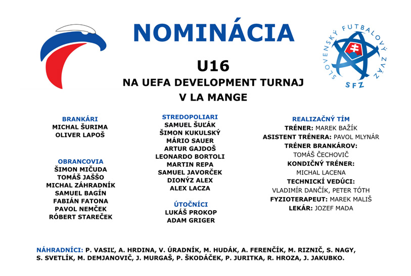 V 20-člennej nominácii trénera Mareka Bažíka sú aj dvaja ružomberskí obrancovia Michal Záhradník a Pavol Nemček. Medzi náhradníkmi sa nachádza ďalší defenzívny futbalista klubu z centra dolného Liptova Viktor Úradník.