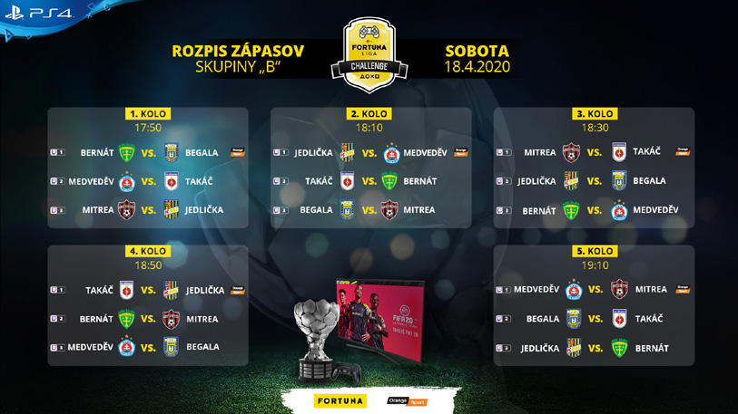 4. kolo: 18:50 – 19:10 MFK Ružomberok – FC DAC 1904 Dunajská Streda → kanál 1 + Orange Sport