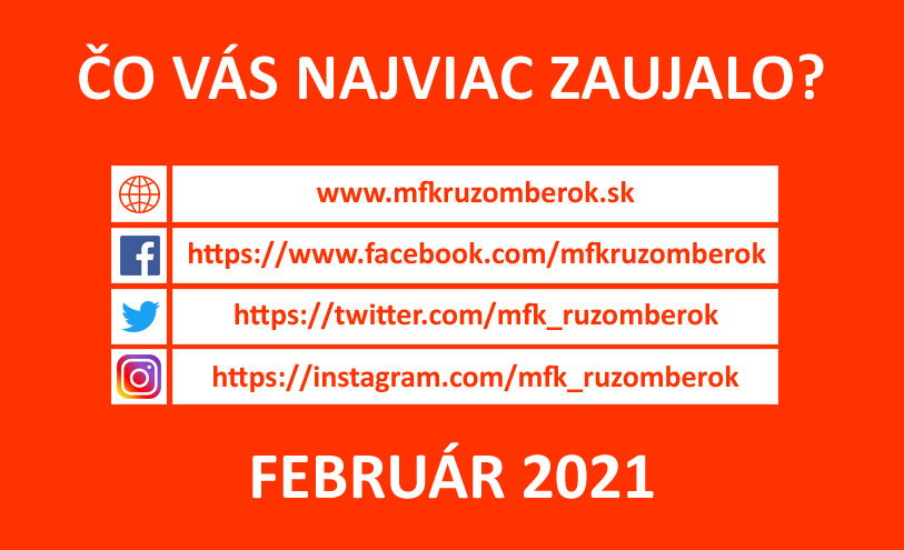 Na stránke klubu si za uplynulý mesiac pripísala najviac prečítaní smutná správa o úmrtí nášho bývalého futbalistu a trénera Jozefa Chmúru a to 2 606. Celkovo bolo v mesiaci február uverejnených 20 článkov s celkovým počtom zobrazení 12 310, čo predstavuje 616 zobrazení na jeden článok.