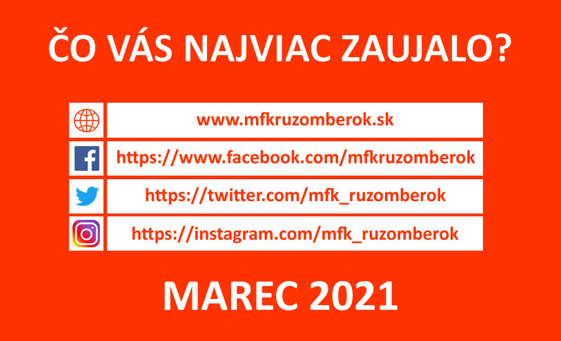 Na stránke klubu si za uplynulý mesiac pripísal najviac prečítaní článok Preview: V súboji s Michalovcami tím povedie Marek Sapara a to 1 021. Celkovo bolo v mesiaci marec uverejnených 21 článkov s celkovým počtom zobrazení 9 421, čo predstavuje 449 zobrazení na jeden článok.