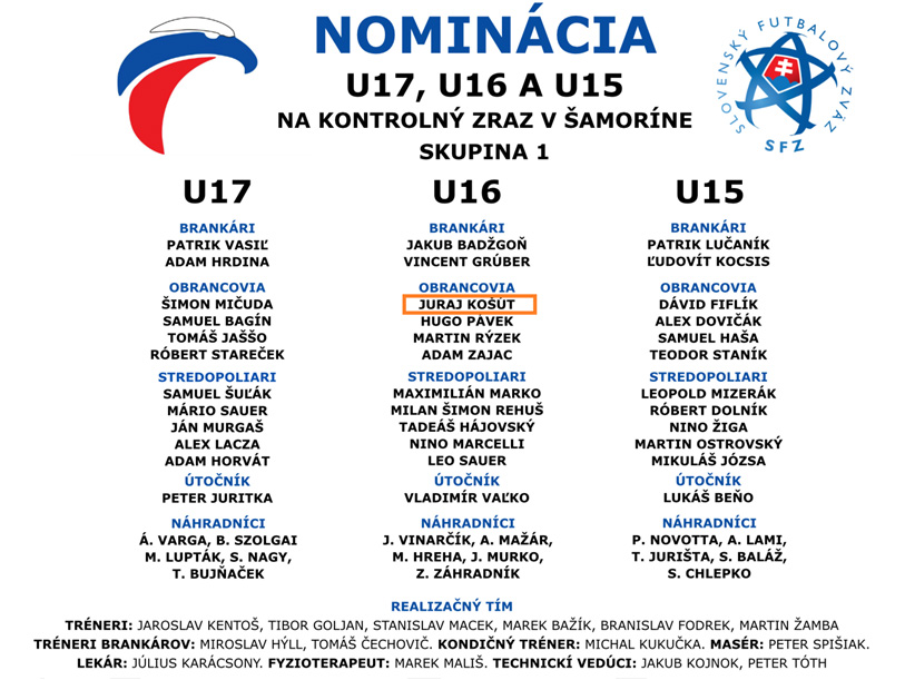 Prvý zraz je na programe od 25. do 29. apríla 2021 a do tímu SR “16“ bol nominovaný obranca Juraj Košút.