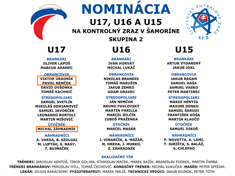 Druhý zraz sa uskutoční od 28. apríla do 2. mája 2021 a do výberu SR “17“ boli nominovaní obrancovia Viktor Úradník a Pavol Nemček a aj útočník Michal Záhradník.