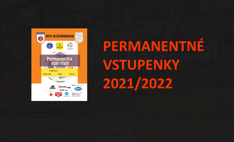 Permanentné vstupenky budú platiť na všetky naše domáce stretnutia Fortuna ligy 2021/22 a sú v jednotnej cene 65 €. Môžete si ich kúpiť v stredu, štvrtok a piatok od 13:00 do 15:00 na ekonomickom oddelení klubu MFK Ružomberok (východná tribúna, pod sektorom G).