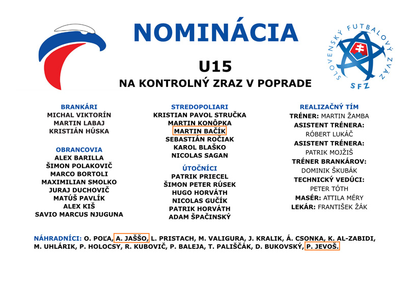 Slovenská „pätnástka“ odštartuje v nedeľu 29. augusta 2021 o 14:00 kontrolný zraz v Poprade. V 23-člennej nominácii trénera Martina Žambu je aj ružomberský stredopoliar Martin Bačík. Medzi náhradníkmi sa nachádzajú Alexander Jaššo a Patrik Jevoš.
