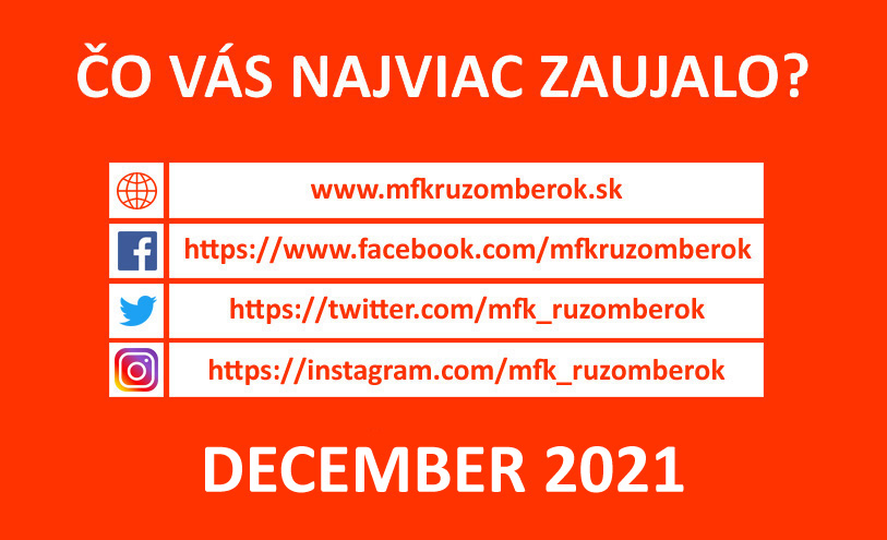Na našom oficiálnom profile na sociálnej sieti Twitter fanúšikov najviac zaujal zostrih gólov v zápase s Michalovcami s 1 934 zobrazeniami. Na spomínanej sociálnej sieti sme v mesiaci december uverejnili 77 príspevkov s celkovým počtom 16 190 zobrazení, čo tvorí priemer 210 zobrazení jedného príspevku.