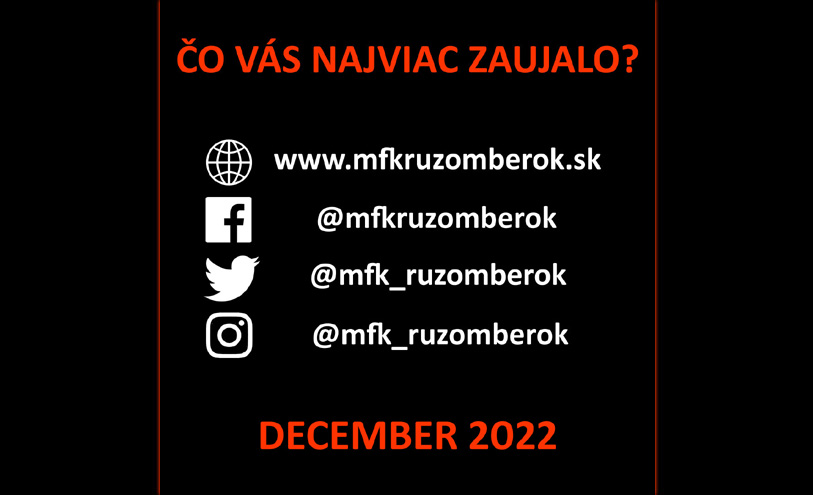 Na našom oficiálnom profile na sociálnej sieti Twitter fanúšikov najviac zaujala ideálna jedenástka jesennej časti Fortuna ligy podľa Andreja Zvolenského, ktorý do nej zaradil Ivana Krajčírika a Alexandra Mojžiša s 525 zobrazeniami. Na spomínanej sociálnej sieti sme v mesiaci december uverejnili 30 príspevkov s celkovým počtom 3 419 zobrazení, čo tvorí priemer 114 zobrazení jedného príspevku.