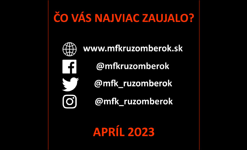 Na stránke klubu si za uplynulý mesiac pripísala najviac prečítaní pozvánka na domáci zápas s Trenčínom a to 662. Celkovo bolo v mesiaci apríl uverejnených 28 článkov s celkovým počtom 8 545 zobrazení, čo predstavuje 305 zobrazení na jeden článok.