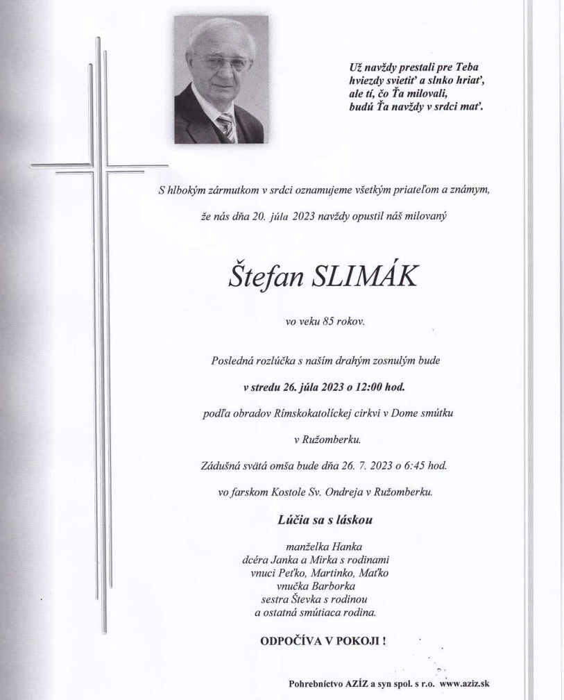 Niekdajší futbalista bol dlhé roky spojený s klubom spod Čebraťa, v ktorého drese prežíval úspešné aj pochmúrne časy. „Jednoznačne najkrajším športovým zážitkom v mojej futbalovej kariére bol postup z divízie do druhej ligy. Bol to výsledok nesmierneho sedemročného úsilia nášho kolektívu. Bola to nielen radosť nás hráčov, ale aj celej ružomberskej futbalovej verejnosti,“ citovala spomienku Štefana Slimáka na postup z roku 1962 Storočnica ružomberského futbalu.