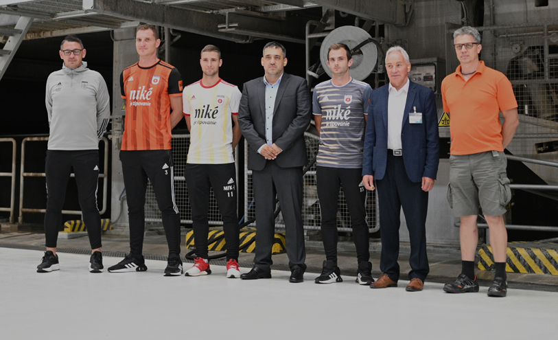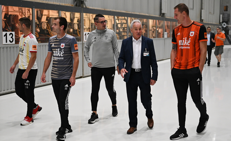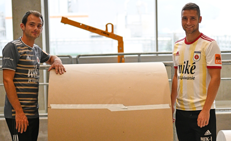 Práve preto krátko pred novou sezónou navštívili Mondi SCP primátor mesta Ľubomír Kubáň, manažér Milan Bezák, hlavný tréner A mužstva Peter Tomko a hráči Ján Maslo, Štefan Gerec a Samuel Lavrinčík. Zástupcovia futbalového klubu videli zblízka najväčšiu pýchu papierenského gigantu – stroj uvedený do skúšobnej prevádzky v jeseni 2021. „Toto je stroj, ktorý nemá v Európe konkurenciu, čo sa týka výrobku, pretože vyrábame kartón zo zberového papiera a ušľachtilá vrstva na jeho povrchu je bielená krátkovláknitá buničina, ktorá sa vyrába v našom závode,“ priblížil Ľubomír Líška, sprevádzajúci návštevníkov a prezradil aj to, aké množstvo kartónu dokáže stroj vyrobiť: „Závisí to od objednávok, od množstva a od plošnej hmotnosti, ale priemerná výroba je zhruba tisíc ton za deň.“