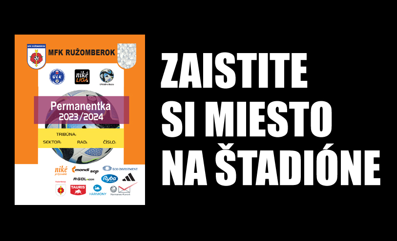 Permanentné vstupenky budú platiť na všetky naše domáce zápasy Niké ligy 2023/24 a sú v jednotnej cene 85 €. Môžete si ich kúpiť od tejto chvíle každý pondelok, stredu a piatok od 10:00 do 14:00 na ekonomickom oddelení klubu MFK Ružomberok (východná tribúna, pod sektorom G).
