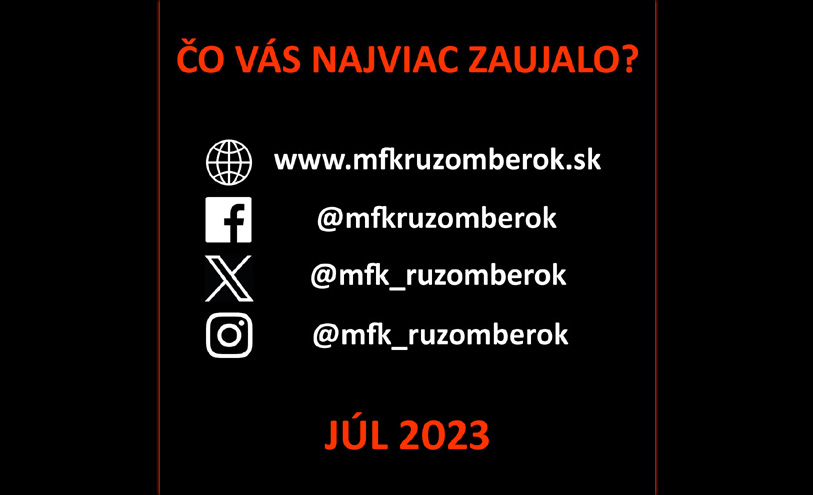Na našom oficiálnom profile na sociálnej sieti Twitter fanúšikov najviac zaujal príspevok Marián Chobot prichádza do Ružomberkas 6 987zobrazeniami. Na spomínanej sociálnej sieti sme v mesiaci júl uverejnili 56 príspevkov s celkovým počtom 23 119 zobrazení, čo tvorí priemer 413 zobrazení jedného príspevku.