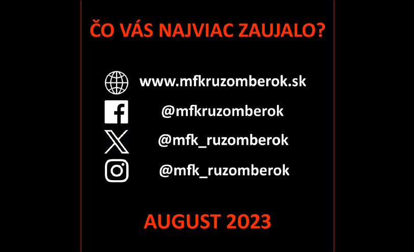 Na sociálnej sieti Instagram si za uplynulý mesiac najlepšie počínalo video z oslavy v šatni po výhre nad Skalicou s dosahom 2 707 ľudí. Zhodný najvyšší počet reakcií si tentokrát pripísali dva príspevky – informácia o príchode Šimona Gabriela aj víťazstvo U19 v prípravnom zápase nad RSC HAMSIK ACADEMY a to 372. Pridaných bolo 258 príspevkov (vrátane príbehov) s celkovým dosahom 266 236 ľudí, čo v priemere predstavuje 1 032 ľudí na jeden príspevok. V auguste sme našimi príspevkami na Instagrame celkovo oslovili 9 208 účtov.