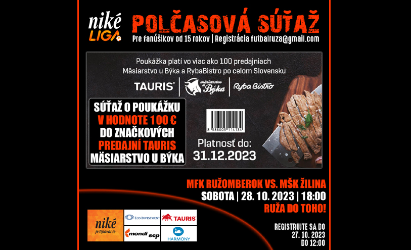 • Pre fanúšikov od 15 rokov (vrátane), sme pripravili súťaž o poukážku v hodnote 100 € do značkových predajní Tauris Mäsiarstvo u Býka.