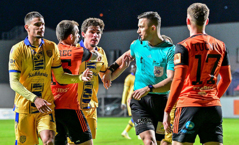 Liptáci mali aktívny vstup do úvodného dejstva, no súper ich nepúšťal do výraznejších šancí. Blízko ku gólu mali Samuel Šefčík s Martinom Boďom, ale obidvom stihol zmariť príležitosť Milán Vitális. Postupom času prebrali iniciatívu hostia a ich snaha vyústila do úvodného gólu, ktorý strelil v 38. minúte z pokutového kopu Moussa Koné. „Prvý polčas sme začali veľmi dobre. Mali sme prevahu. Potom ku koncu nás trošku zatlačili. Do druhého polčasu sme zase naskočili lepšie a myslím si, že za druhý polčas sme si zaslúžili vyhrať,“ zhodnotil futbalista obliekajúci dres s číslom sedemnásť.