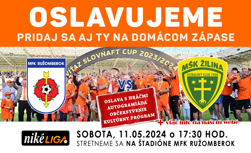 Pre náš tím, ktorý má momentálne na svojom konte 46 bodov a patrí mu piata pozícia, pôjde o posledný domáci súboj v tejto sezóne. Máme tak možnosť spolu s vami na našom štadióne osláviť triumf v Slovnaft Cupe. V sobotu sa môžete tešiť na kultúrny program, občerstvenie od nášho partnera spoločnosti TAURIS a po stretnutí aj na oslavu spolu s hráčmi spojenú s autogramiádou ružomberského A mužstva!
