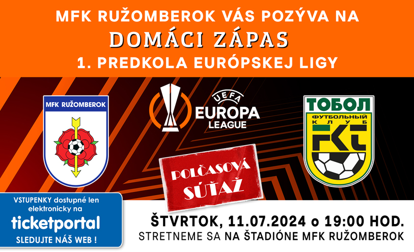 AKTUALIZÁCIA 9. 7. 2024: Vážení fanúšikovia MFK Ružomberok, na základe Vašich početných dopytov sme sa rozhodli mimoriadne otvoriť pokladne s možnosťou predaja lístkov pred zápasom MFK Ružomberok – FC Tobol Kostanaj, ktorý začne 11.7.2024 o 19.00 hod. na štadióne MFK Ružomberok. Predaj na pokladniach bude spustený hodinu a pol pred zápasom s limitovaným množstvom vstupeniek. Preto Vás chceme požiadať, aby každý, kto má možnosť, využil nákup lístkov online prostredníctvom Ticketportálu na tomto ODKAZE.