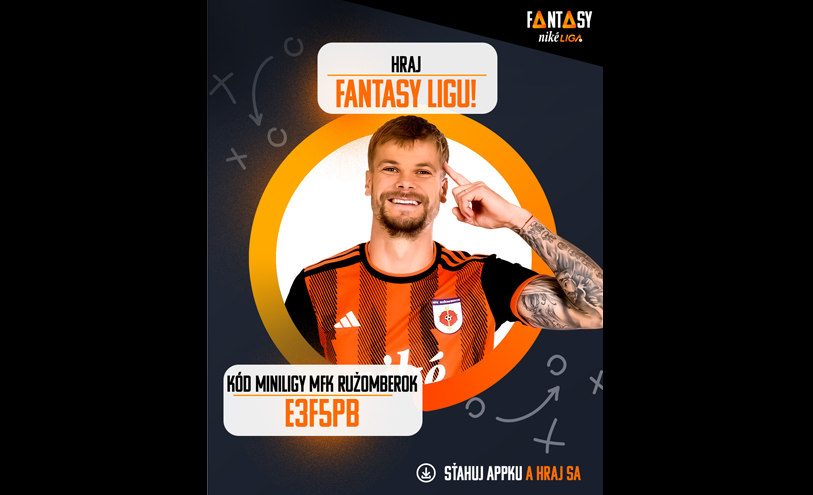 Zároveň sa prostredníctvom kódu E3F5PB môžeš pridať do našej miniligy MFK Ružomberok.