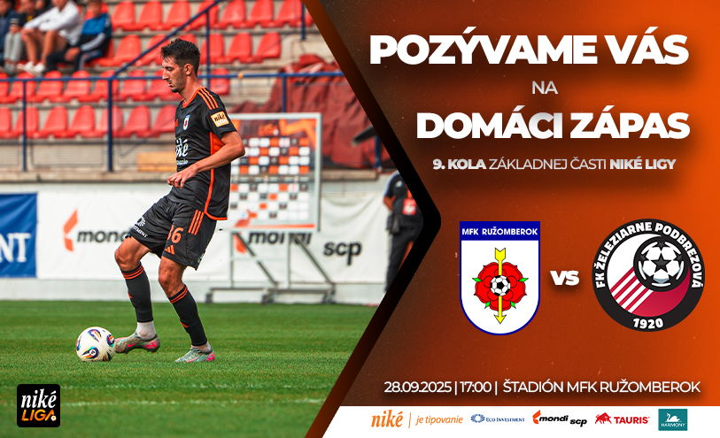 V nedeľu 28. septembra 2025 o 17:00 odohrá Ružomberok domáce stretnutie deviateho kola Niké ligy s Podbrezovou.