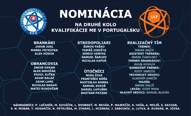 Mladí Slováci si zmerajú sily s rovesníkmi z domáceho Portugalska (22. marca o 17:00), Česka (25. marca o 12:00) a Poľska (28. marca o 16:00). V 21-člennej nominácii trénera Mareka Bažíka je Daniel Lopušek. Medzi náhradníkmi sú Lukáš Dvorský, Peter Majerčík a Leopold Mizerák.