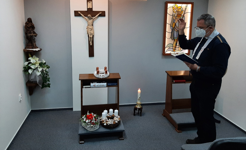 Ešte pred tým ako sme zapálili sviečku na adventnom venci, navštívil štadión rímskokatolícky kňaz ThLic. Ing. Jozef Žvanda, PhD., ktorý v našej kaplnke posvätil adventné vence umiestnené v kaplnke a aj adventné vence našich zamestnancov.