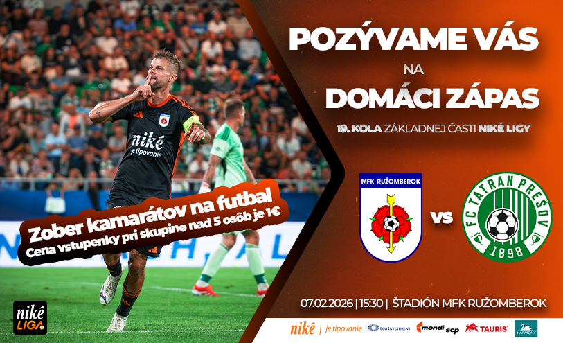 Na oficiálnych profiloch klubu na sociálnych sieťach Facebook, Instagram, X a Threads bude od pondelka 2. februára do štvrtka 5. februára 2026 do 11:00 prebiehať súťaž o vstupenky. Po jej skončení vyžrebujeme troch výhercov, ktorí získajú po dve vstupenky na domáci súboj s Prešovom.