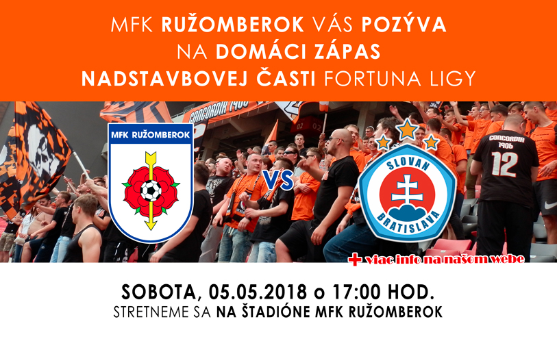 V sobotu 5. mája 2018 o 17:00, odohráme domáci zápas 8. kola nadstavbovej časti Fortuna ligy so Slovanom Bratislava.