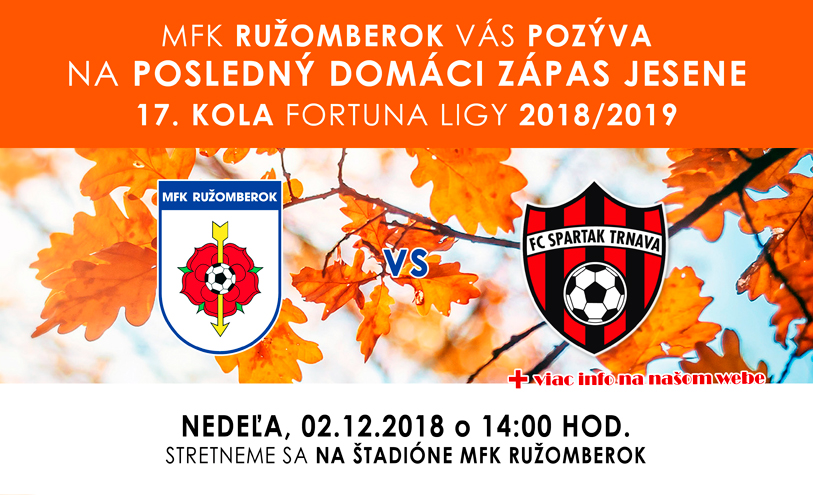 Ruža si v minulom kole odviezla zo súboja so Slovanom Bratislava cenný bod za remízu 1:1 a naďalej sa nachádza v ligovej tabuľke na štvrtej priečke. V poslednom domácom súboji jesennej časti chceme doma zvíťaziť nad úradujúcim majstrom a účastníkom skupinovej fázy Európskej ligy – Spartakom Trnava, ktorý síce momentálne prežíva náročné obdobie, no rozhodne ide o silného súpera. Na dosiahnutie úspešného výsledku budeme opäť potrebovať vašu mohutnú podporu z hľadiska!