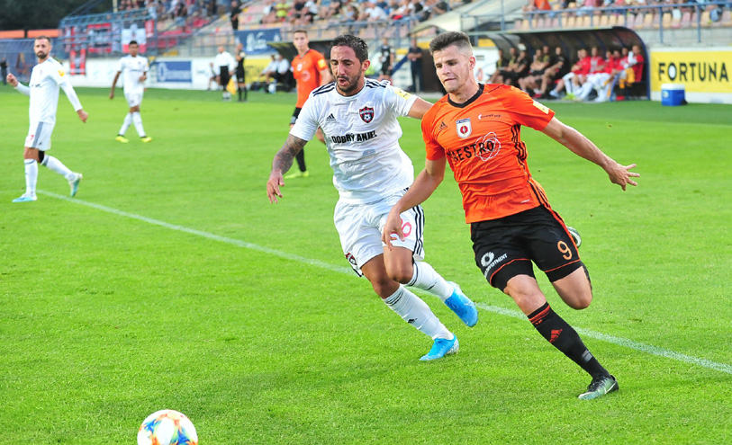 In the eighteenth minute Sobczyk did not use Saymon´s pass in a big chance. After three minutes Macík caught Sobczyk´s header. In the twenty-fourth minute Vukojević missed the target from a penalty kick. About four minutes later Tzandaris scored from behind of the penalty area – 1:0. At the end of the first half time domestic goalie caught Takáč´s attempt from a free kick.
