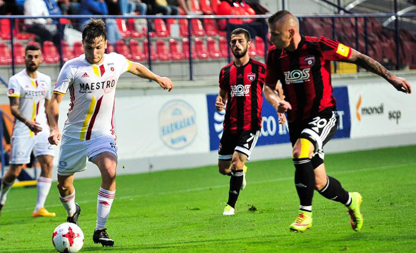 In the fifth minute Egho from behind the penalty area missed the target. About four minutes later Tóth scored after a corner kick – 0:1. In the fifteenth minute Egho missed the target in a big chance. About five minutes later Kružliak scored an own goal after Egho´s pass – 0:2. Then there were more active domestics players. In twenty-sixth minute Vantruba tipped Maslo´s header. After four minutes guest goalie tipped Daniel´s dangerous shot and subsequently Takáč from border of the penalty area just missed the target. In the thirty-eighth minute Qose just missed the target after a Takáč´s corner kick.