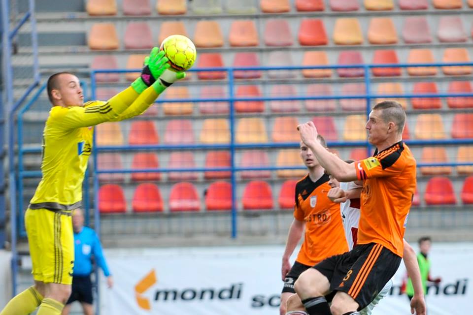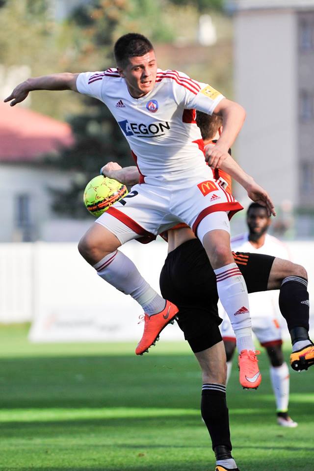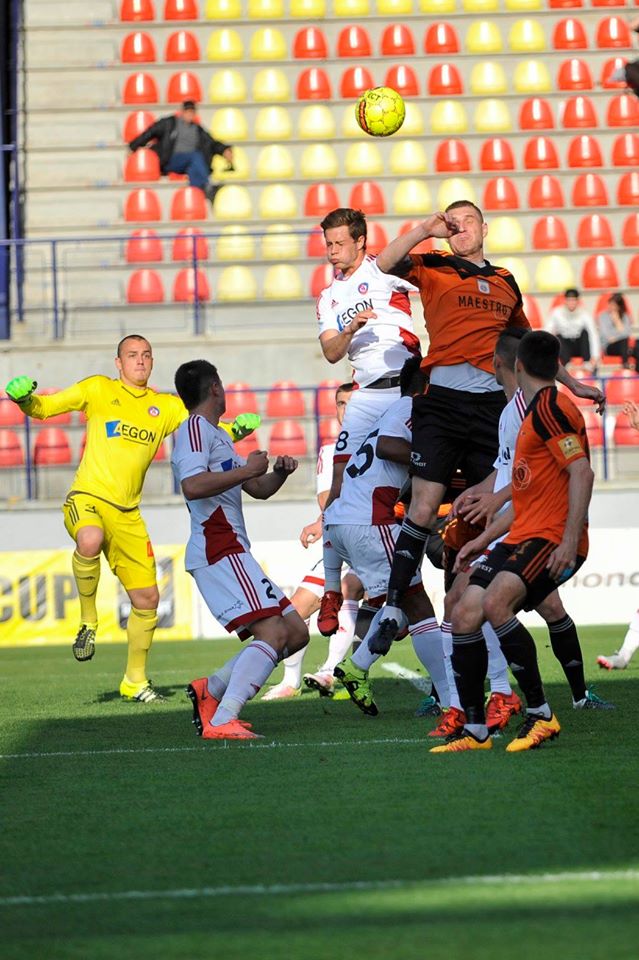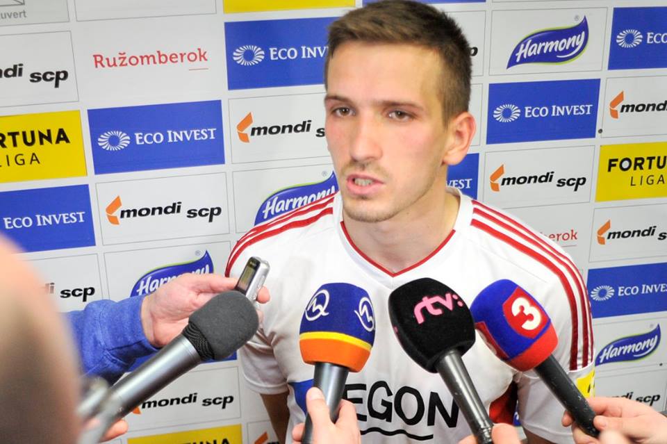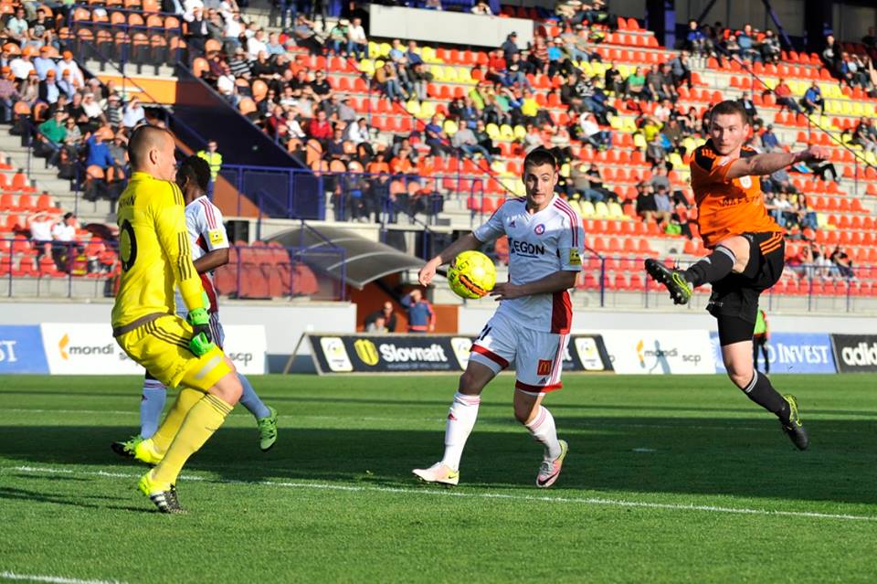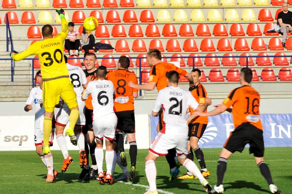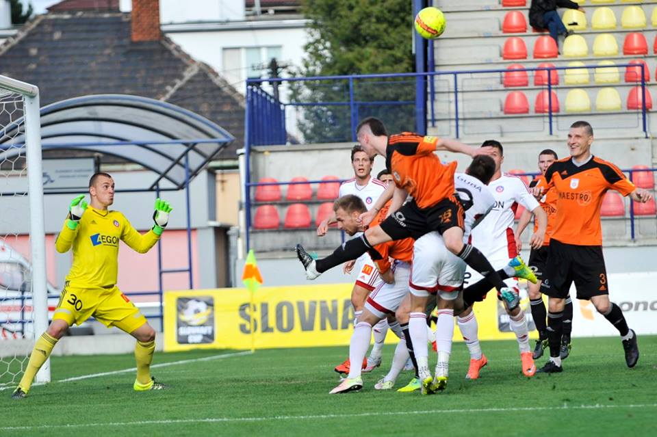 Ján Maslo v hlavičkovom súboji s Lukášom Skovajsom a Matúšom Berom