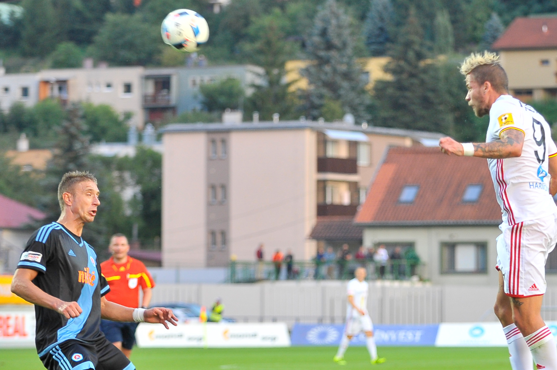 Peter Maslo vo veľkej šanci hlavičkuje na bránu.