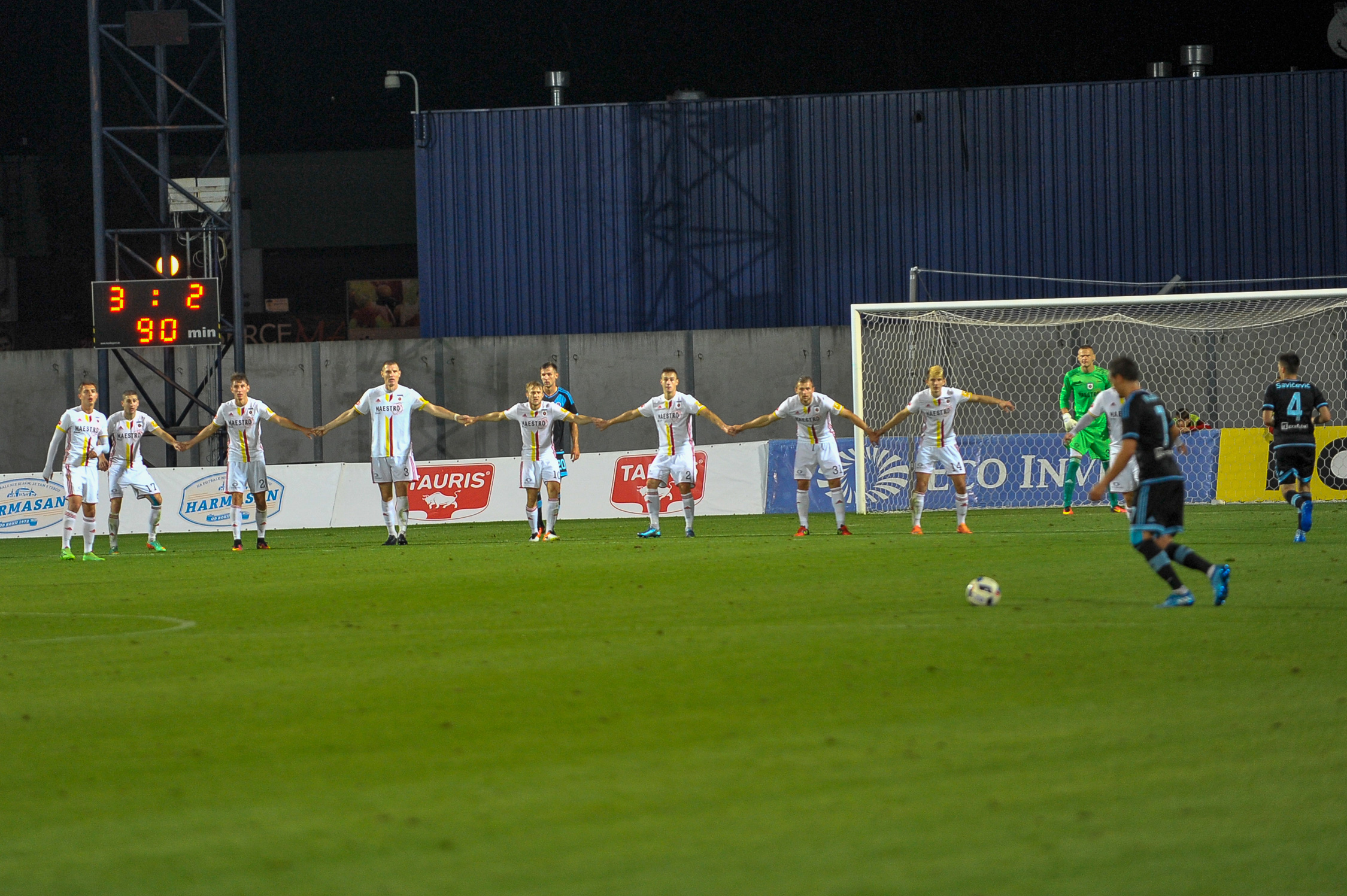 V dramatickom závere hostia znížili na 3:2 a zahrávajú priamy kop.