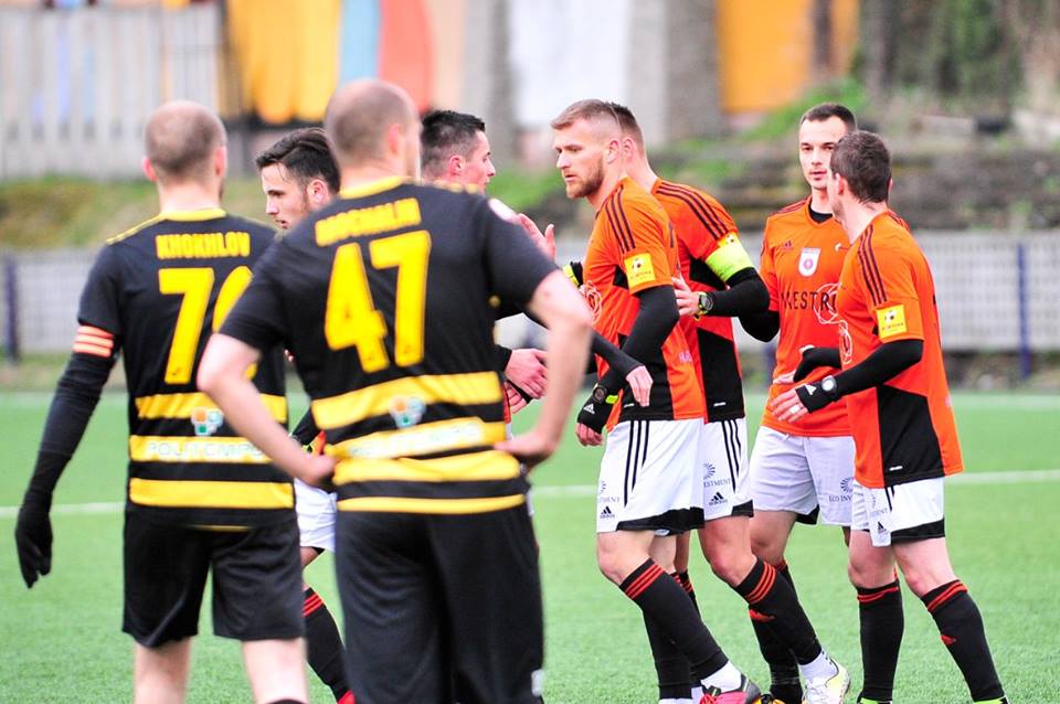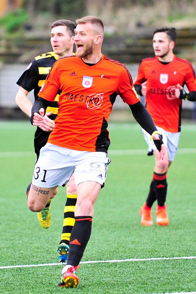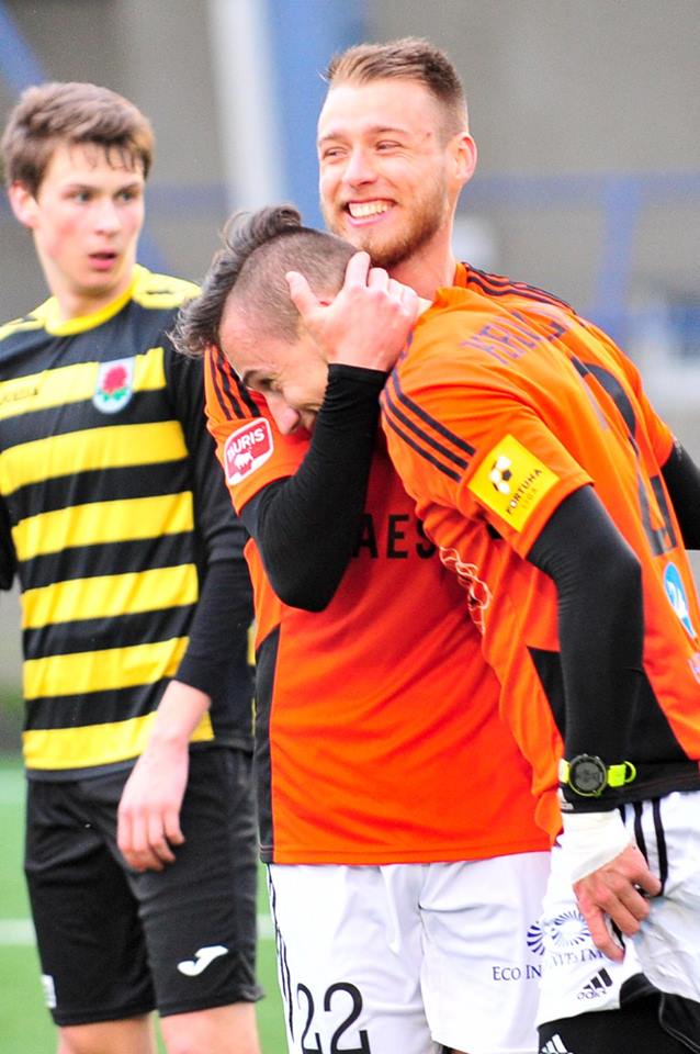 Ján Maslo sa so spoluhráčmi teší z gólu.