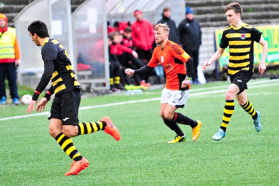 Ján Maslo, Jozef Menich a Miloš Lačný v súperovej šestnástke.