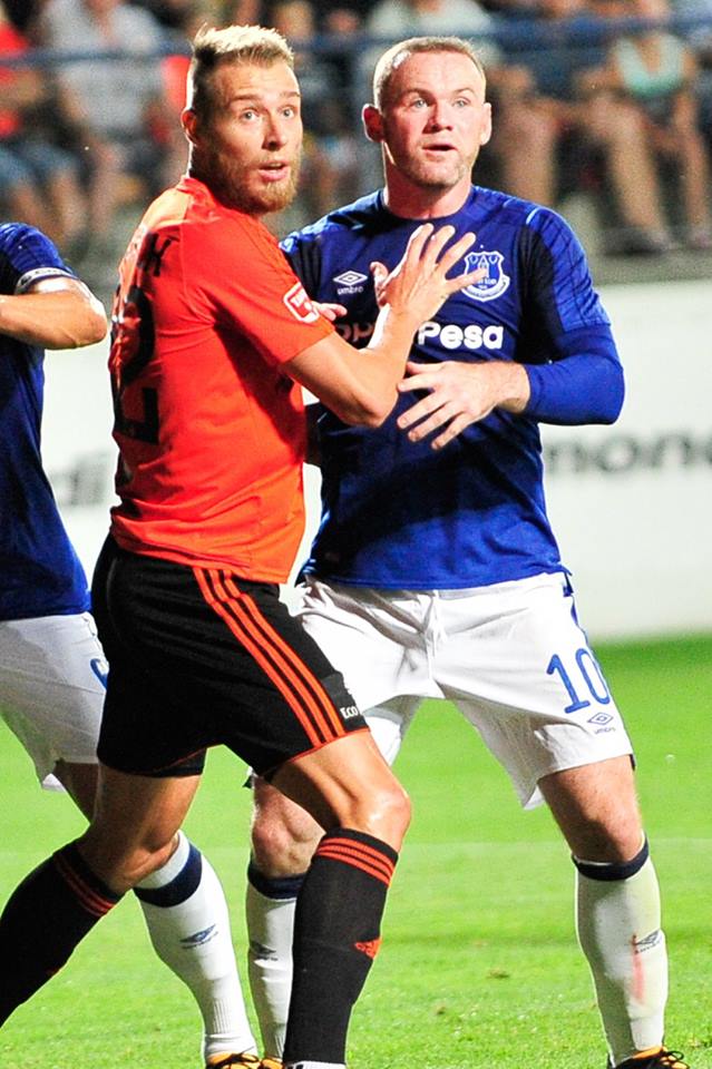 Jozef Menich, Peter Maslo, Wayne Rooney, Phil Jagielka, Dominik Kružliak a Ashley Williams.