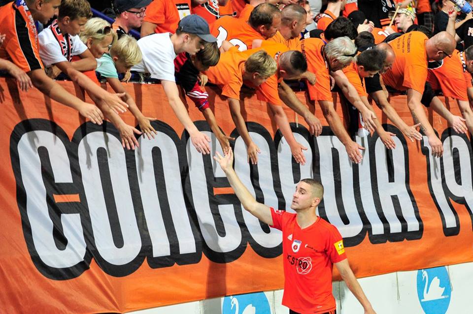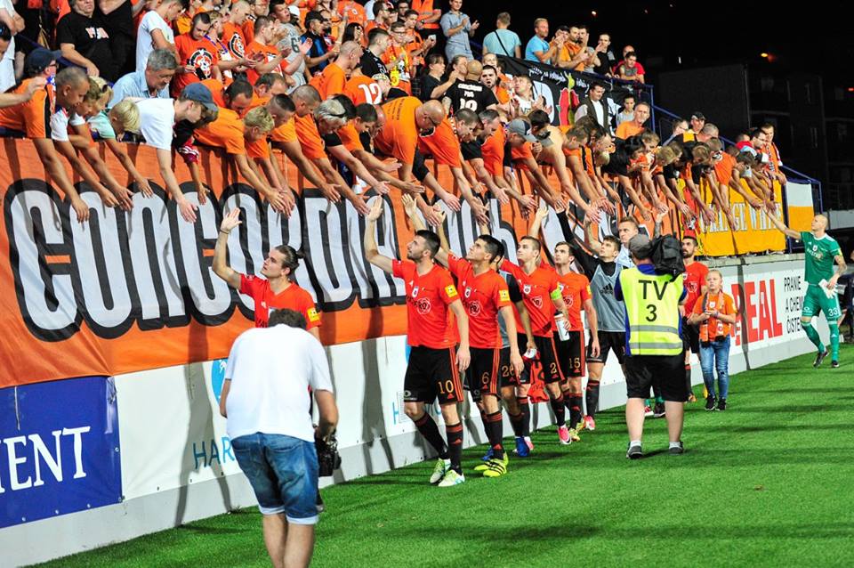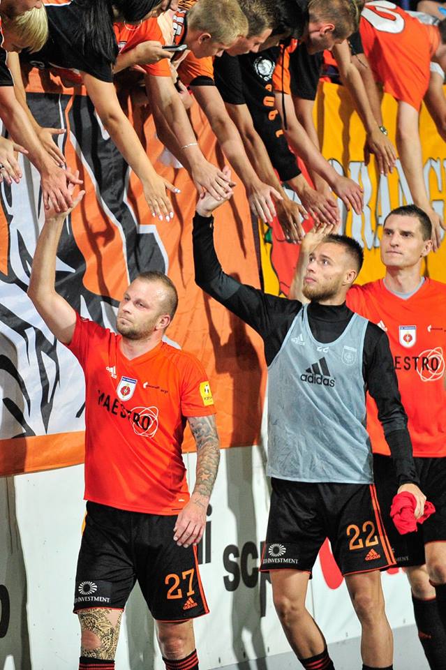 Ďakovačka po zápase - Marek Sapara, Jozef Menich a Ján Maslo.