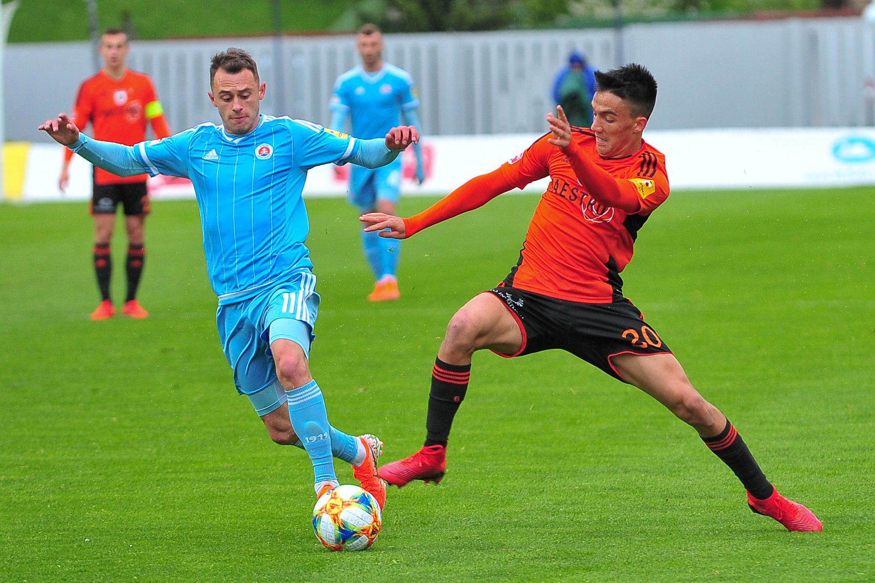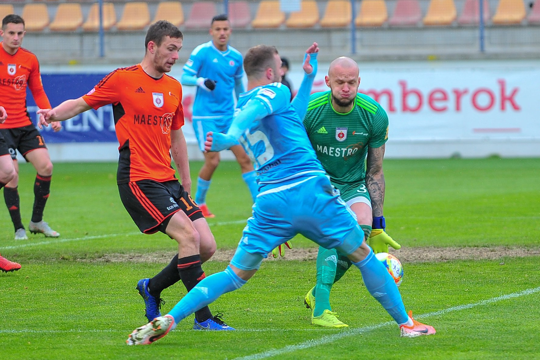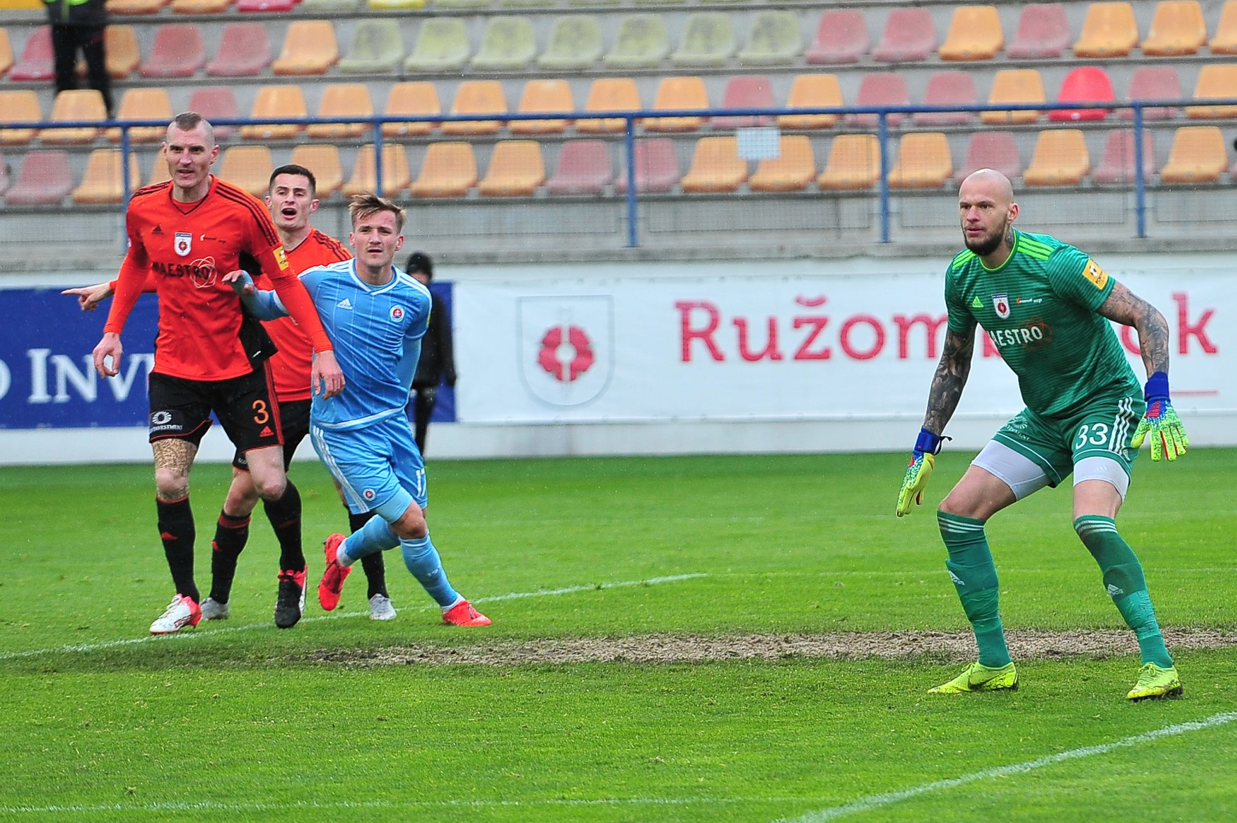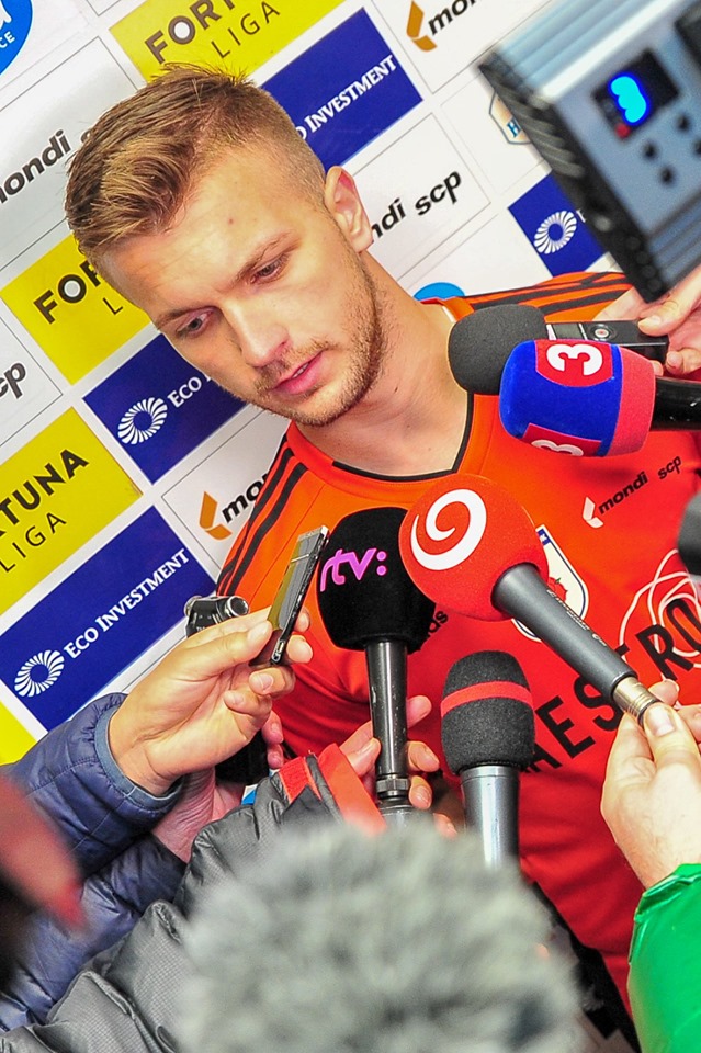 Michal Šulla, Andraž Šporar, rozhodcovské trojica a Dominik Kružliak.