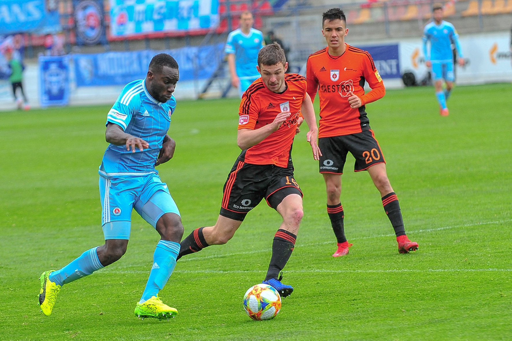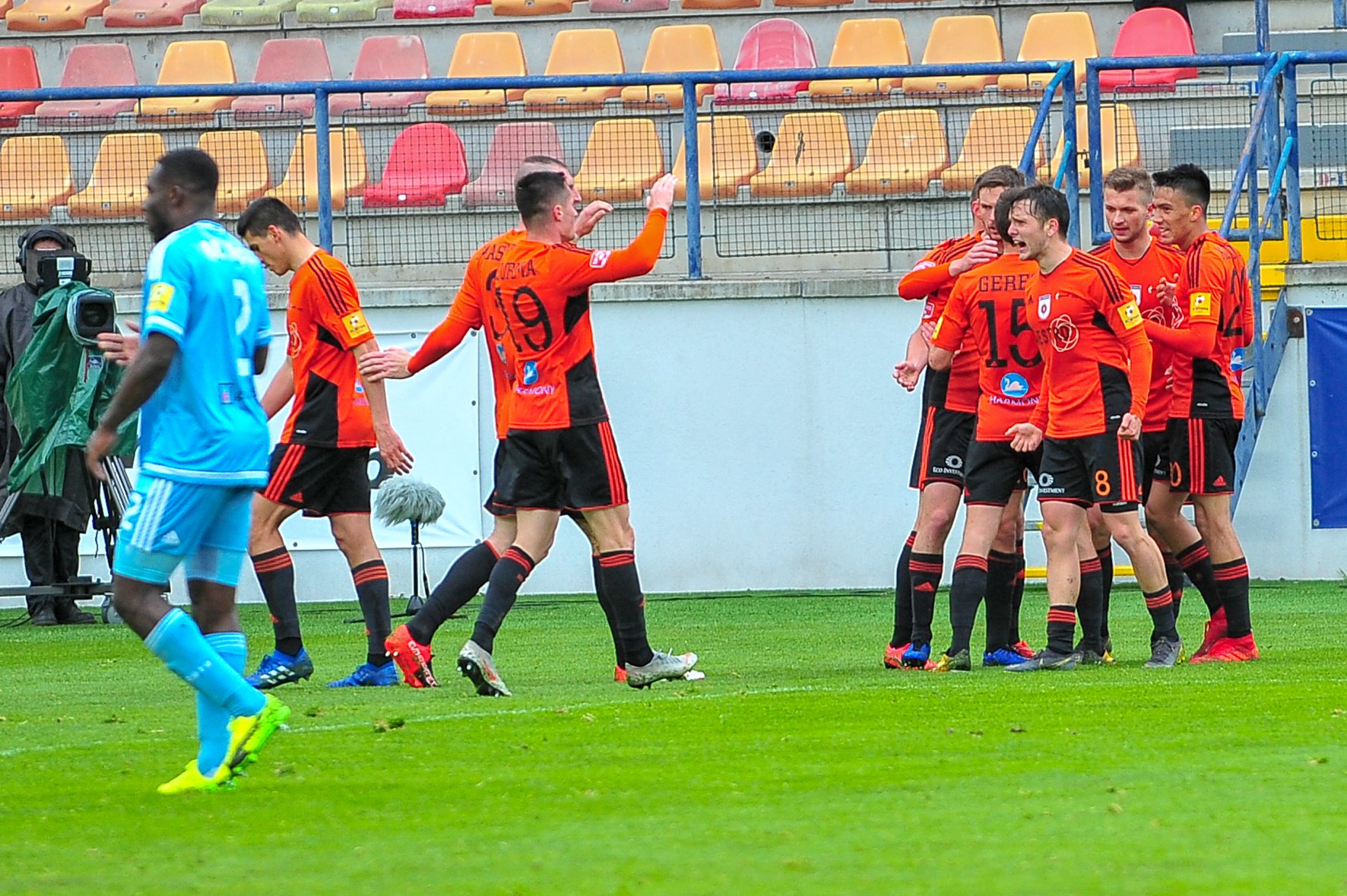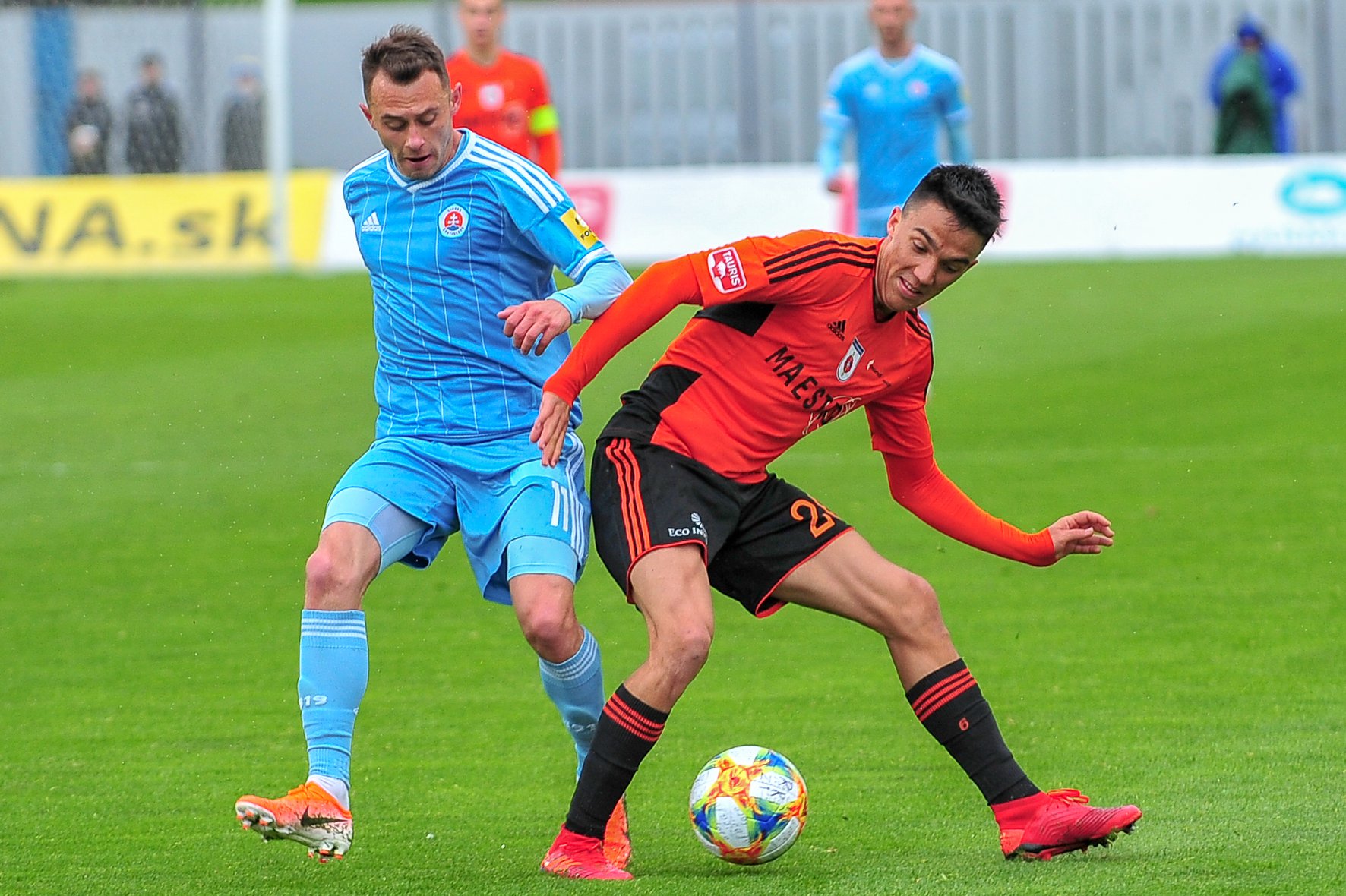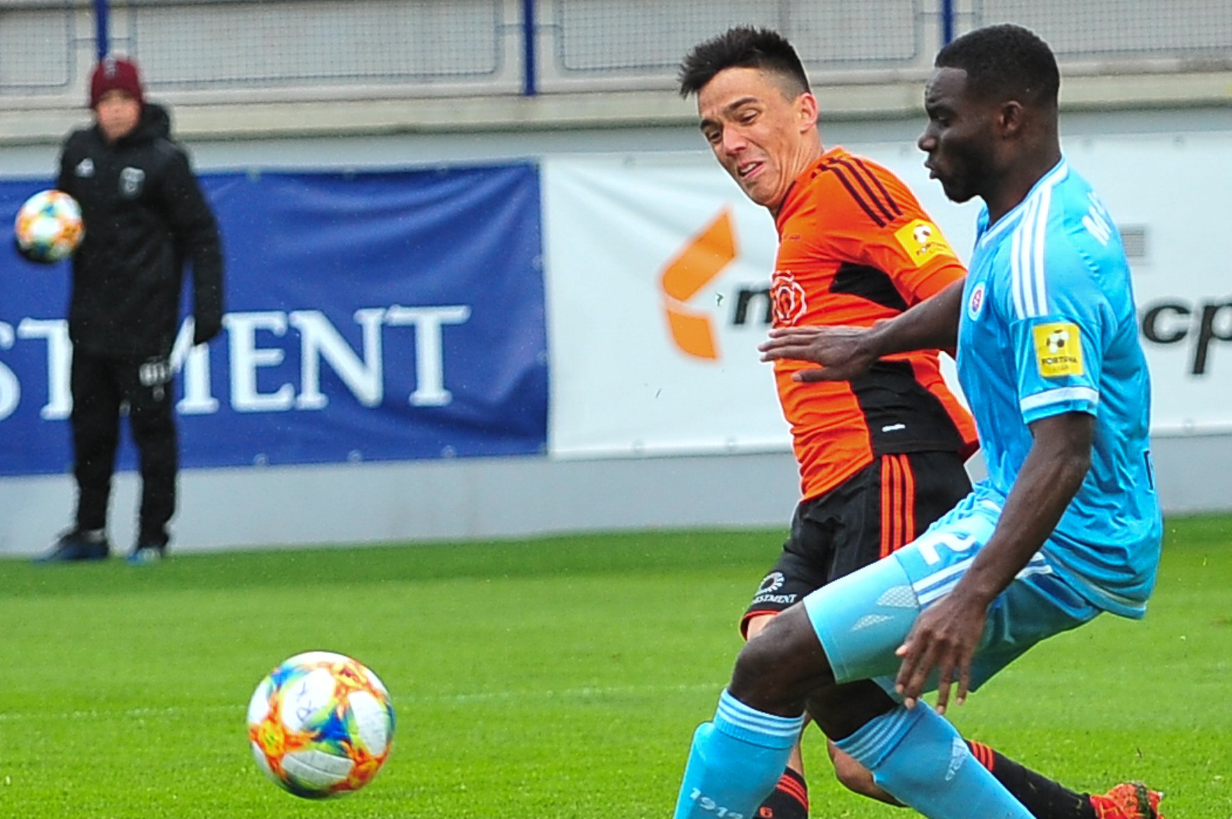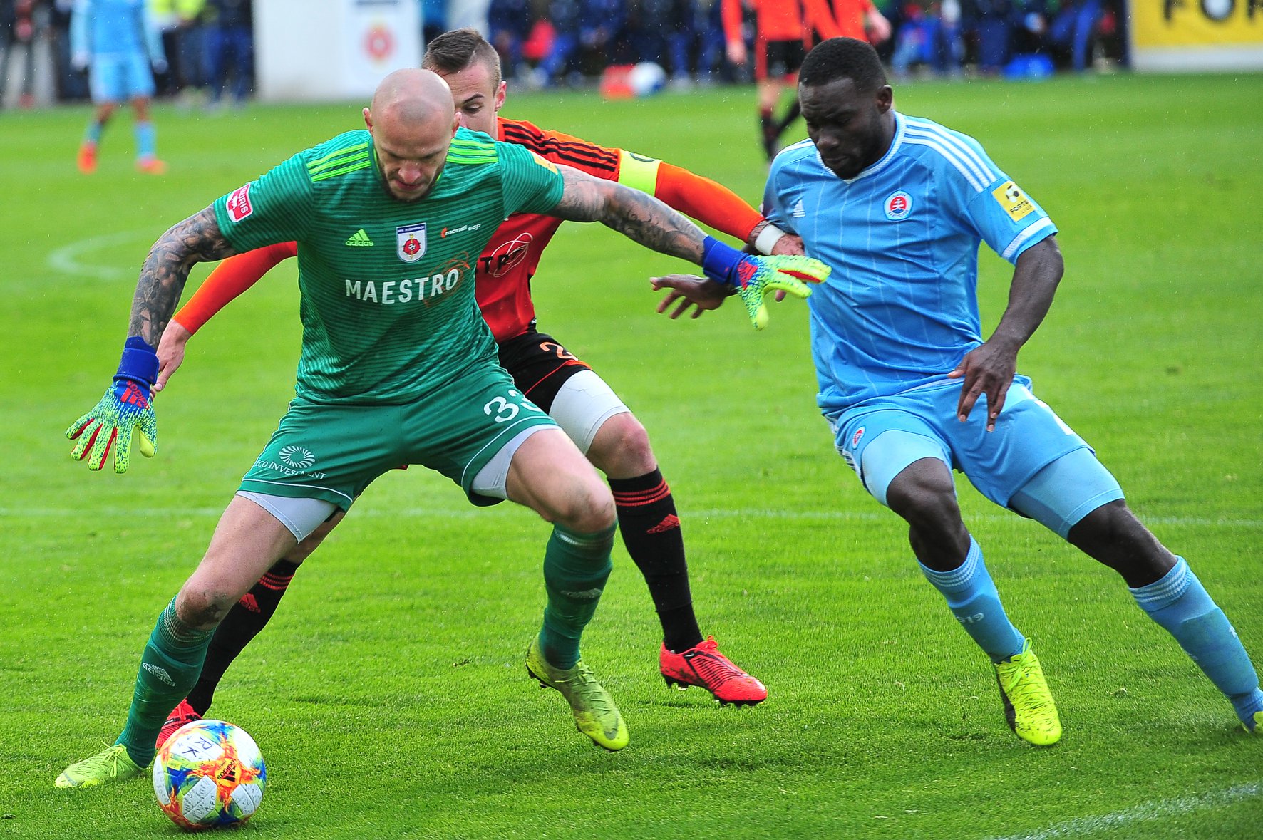 Michal Šulla, Andraž Šporar, rozhodcovské trojica a Dominik Kružliak.
