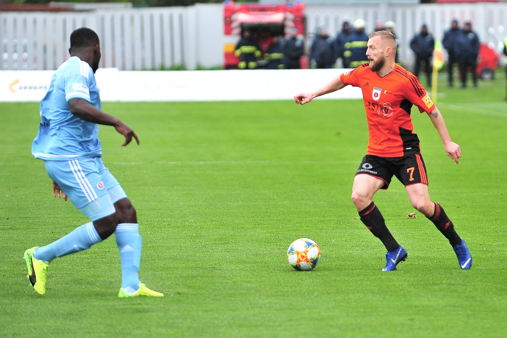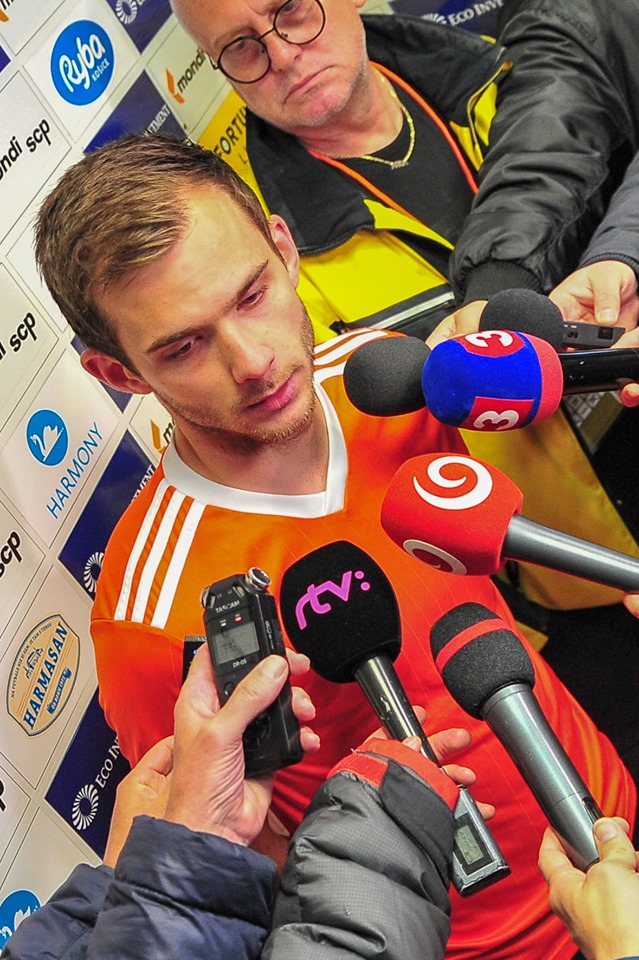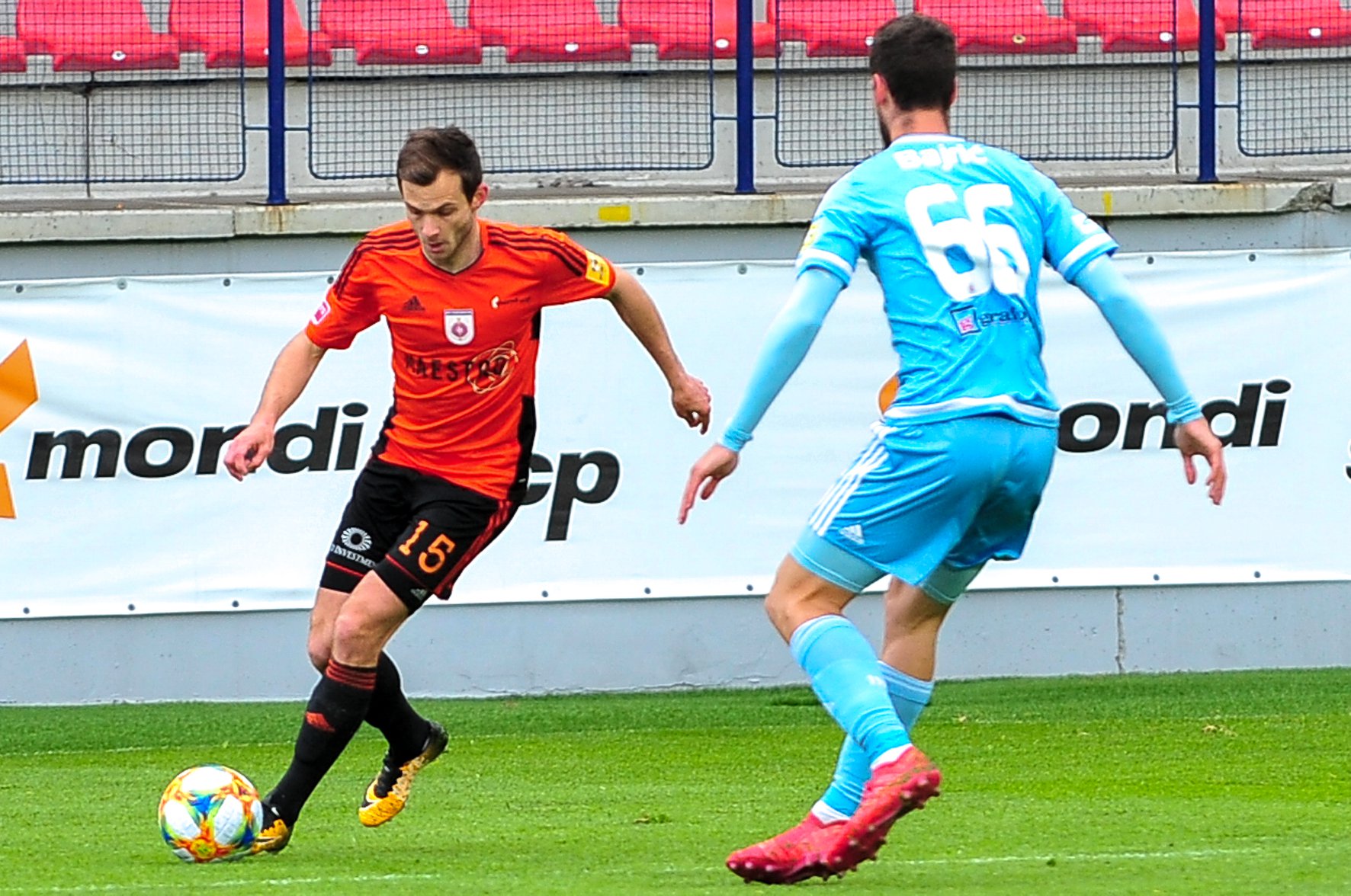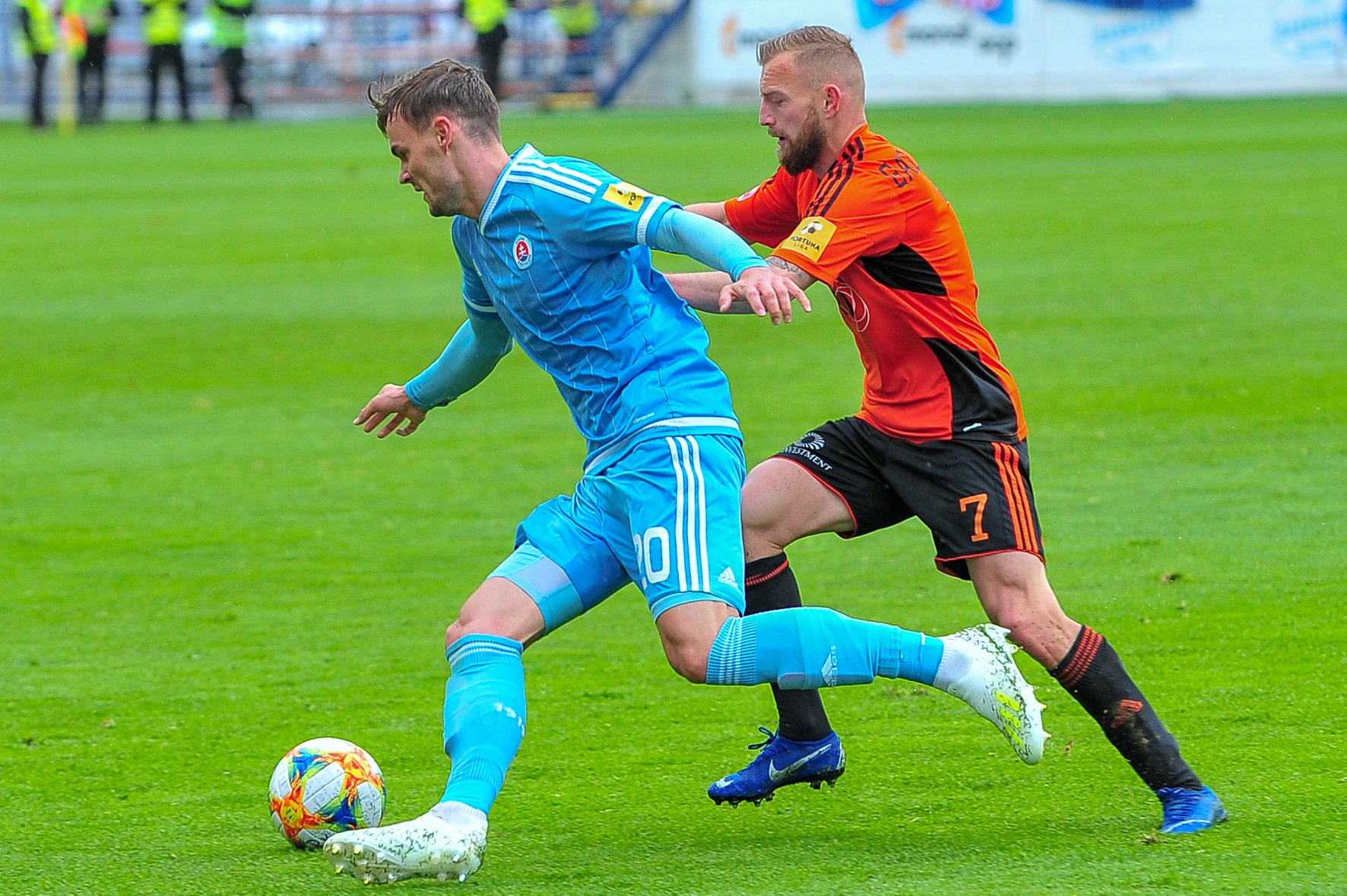 Michal Šulla, Andraž Šporar, rozhodcovské trojica a Dominik Kružliak.
