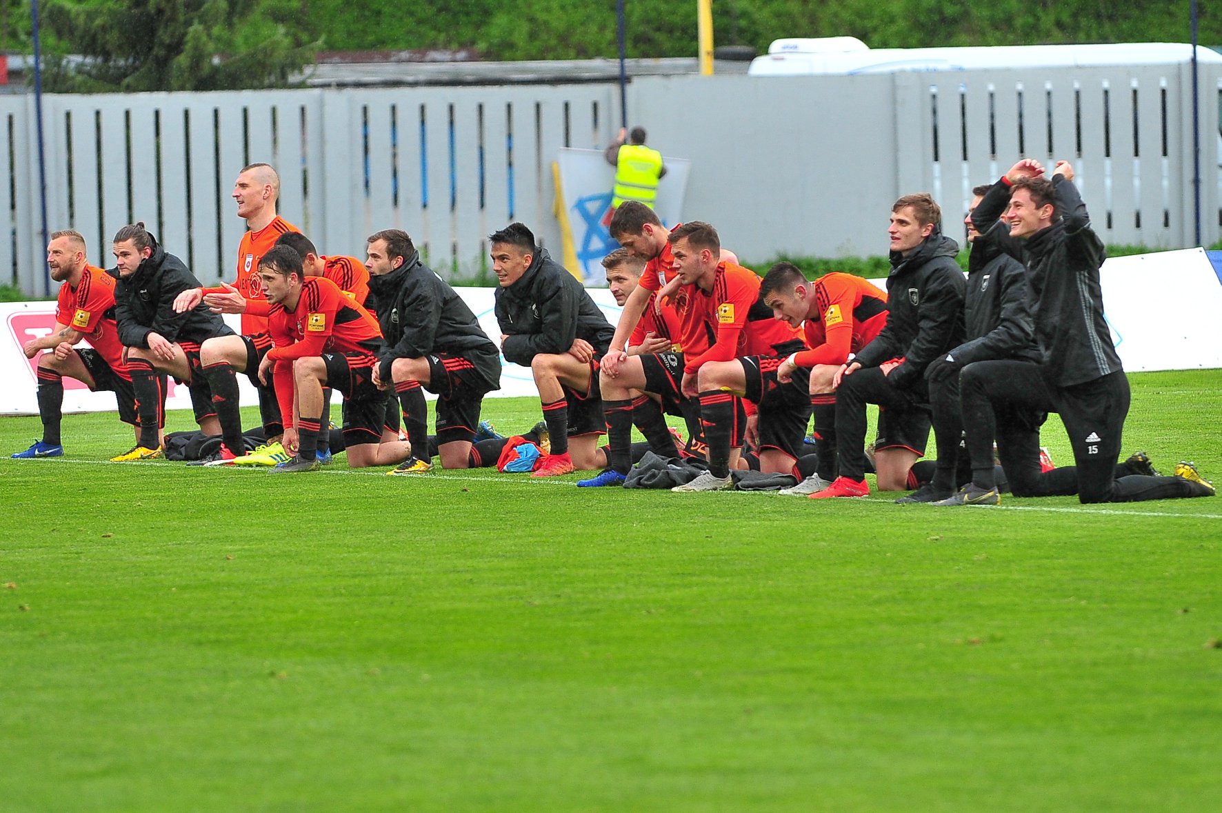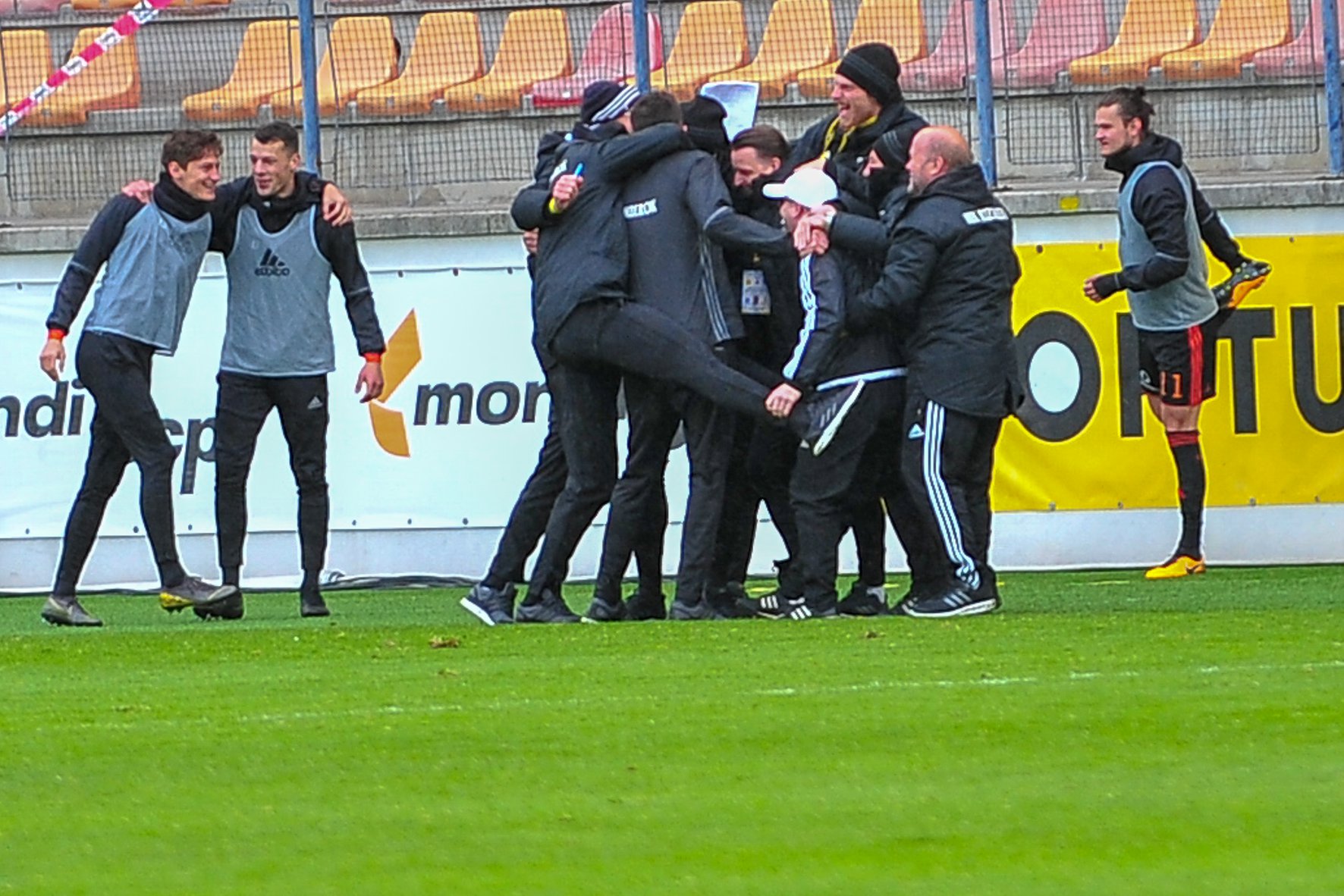 Matej Madleňák, Rastislav Kružliak a realizačný tím po góle Kristiho Qoseho.