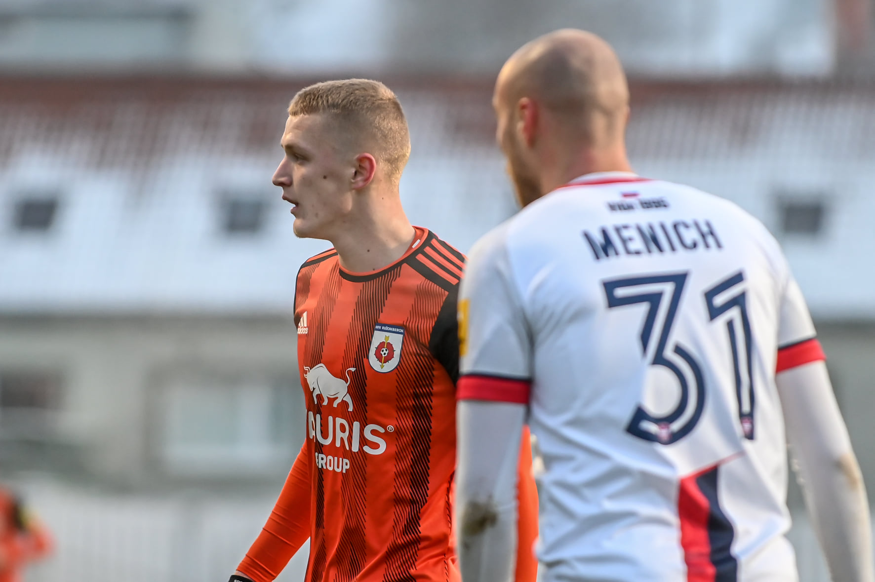 Matúš Kira dostáva gól od Štefana Gereca.