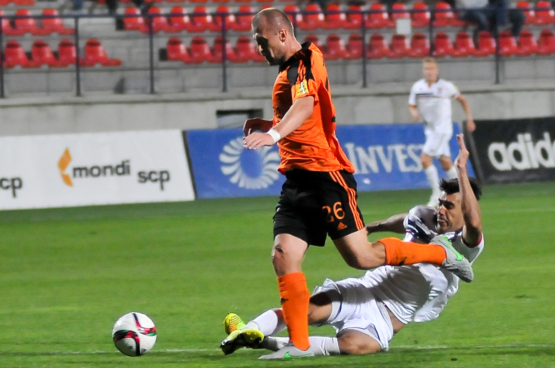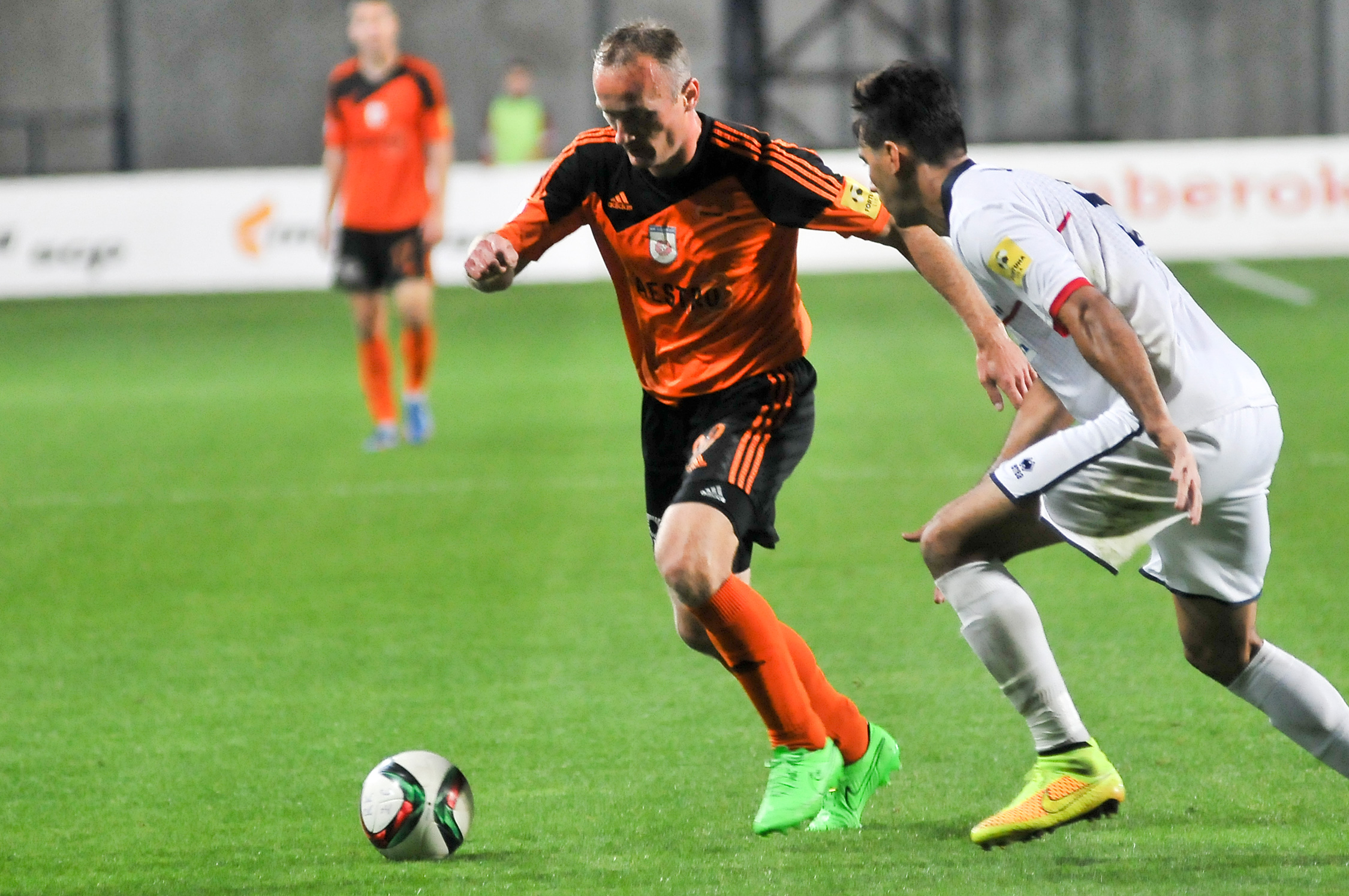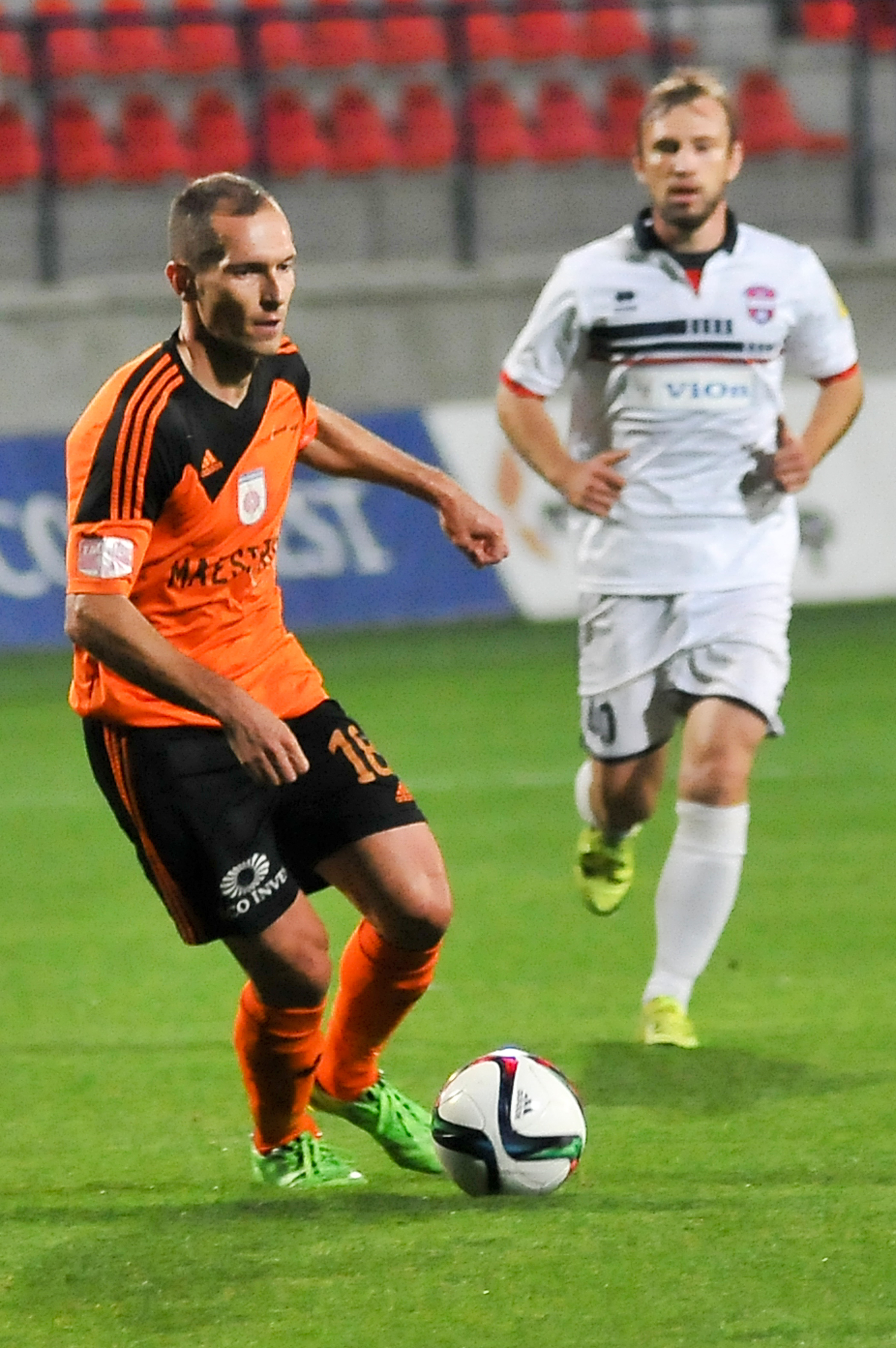 Pavol Masaryk v súboji s hráčom hostí.