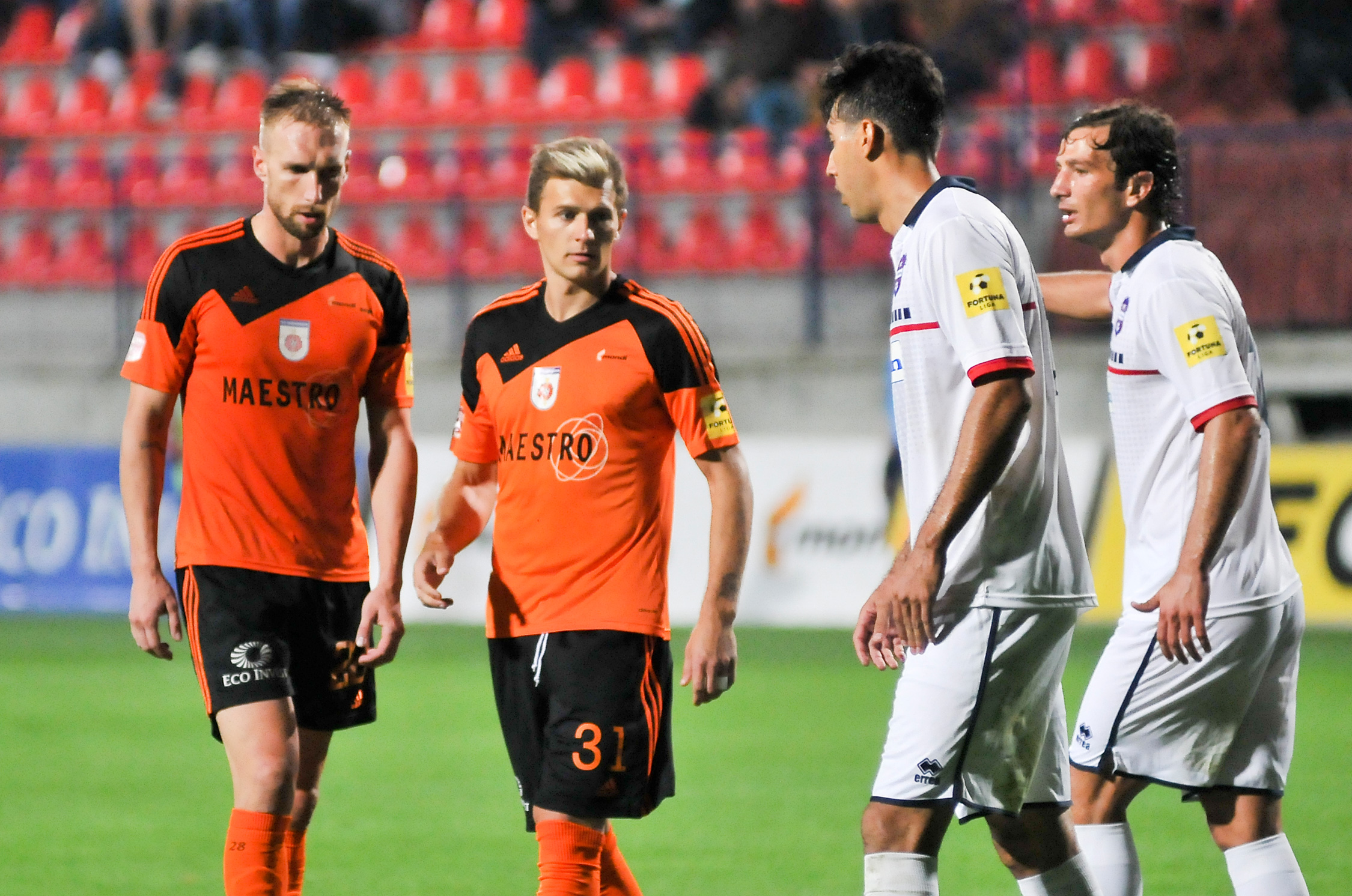 Peter Maslo a Tomáš Ďubek po góle na 3:0, v pozadí Martin Nagy, Antonín Rosa a Michal Faško.