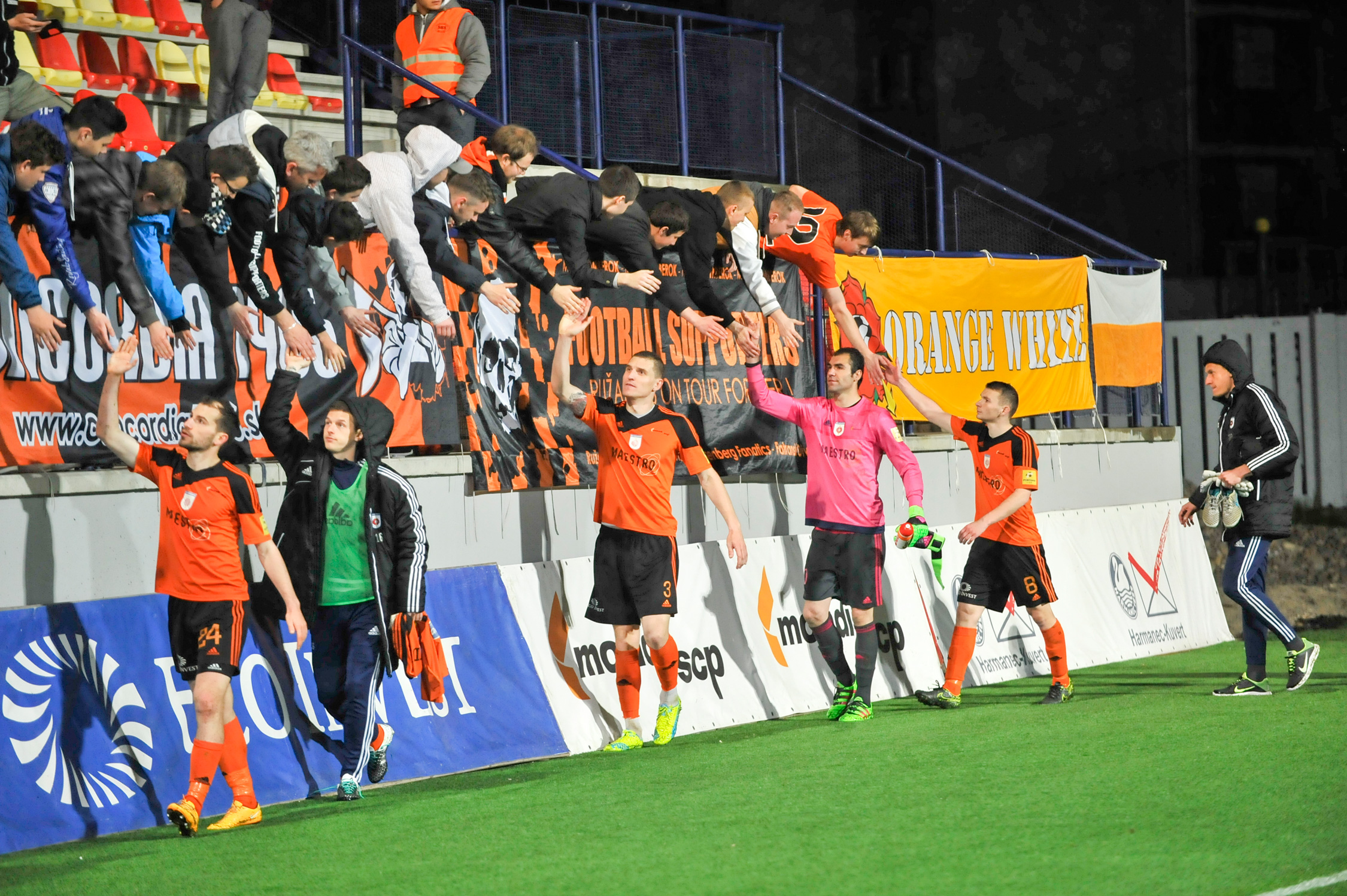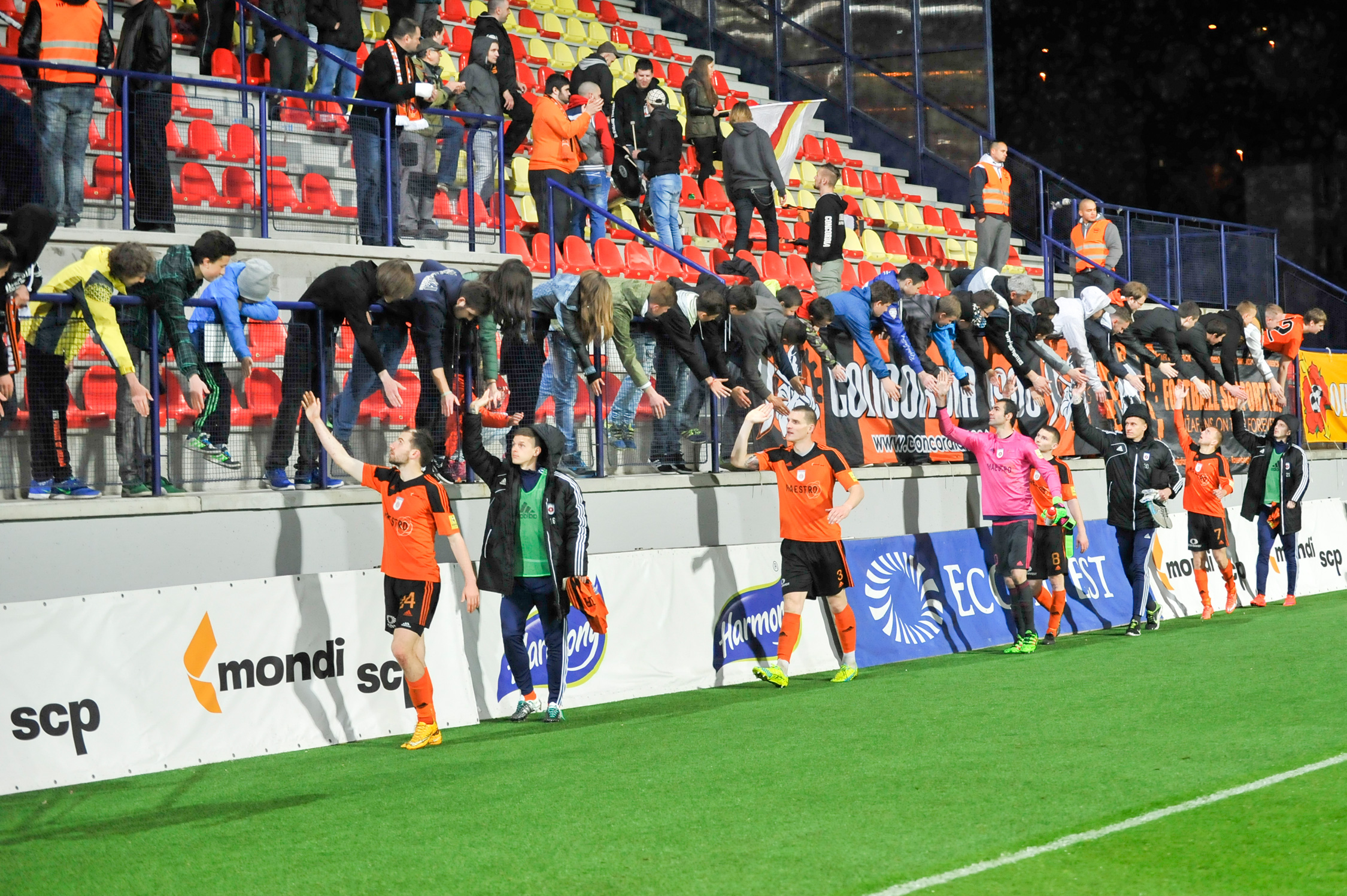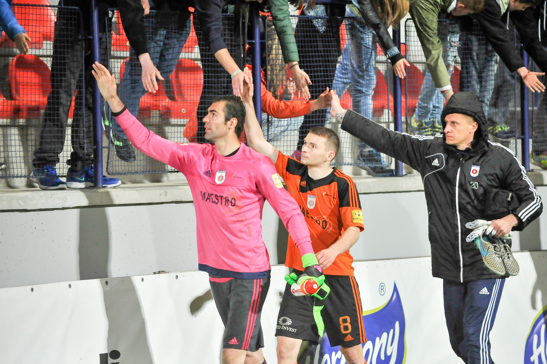 Ďakovačka po zápase - Martin Boszorád, Lukáš Ondrek, Ján Maslo, Darko Tofiloski, Tomáš Gerát a Ľuboš Hajdúch